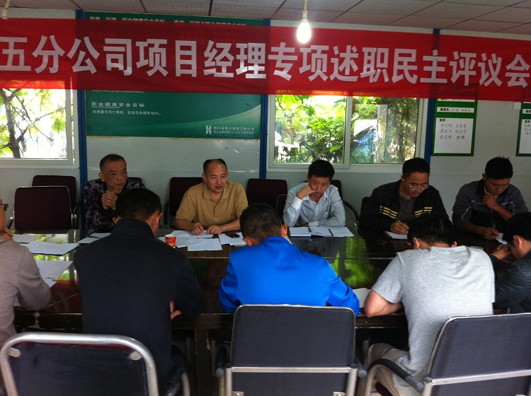 根据公司《关于在项目经理中开展纠正“四风”问题的实施方案》的要求,五分公司党的群众路线教育实践活动领导小组于9月4日——9月6日深入各项目开展项目经理专项述职民主评议活动。公司督导二组、分公司党的群众路线...
