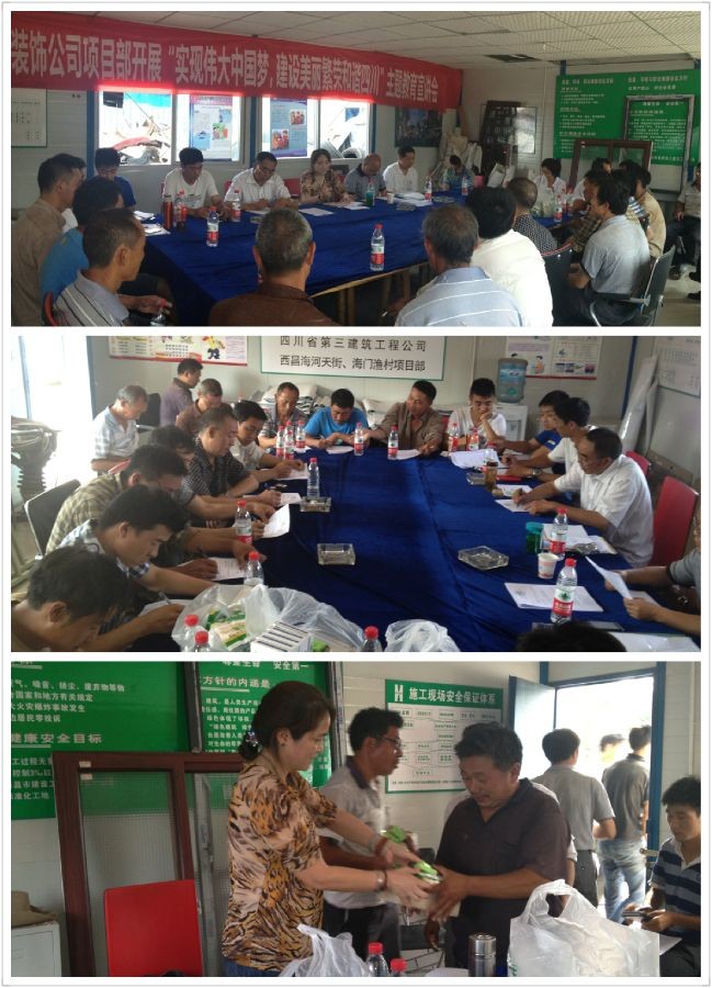 ——装饰公司西昌项目部开展农民工“中国梦”宣讲暨安全生产知识培训 装饰公司在深入广泛开展 “实现伟大中国梦,建设美丽繁荣和谐四川”主题教育活动中,重视对农民工的培训和教育。6月24日,装饰公司党总支书记带...