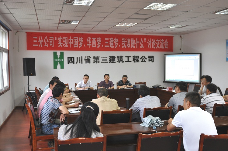 7月10日,三分公司党总支组织开展了“中国梦、华西梦、三建梦,我该做什么”的讨论交流会。分公司班子成员、各项目部班子成员、各科室科长和全体党员、职工代表共计27人参加。分公司党总支书记郭刚主持了讨论交流会。...