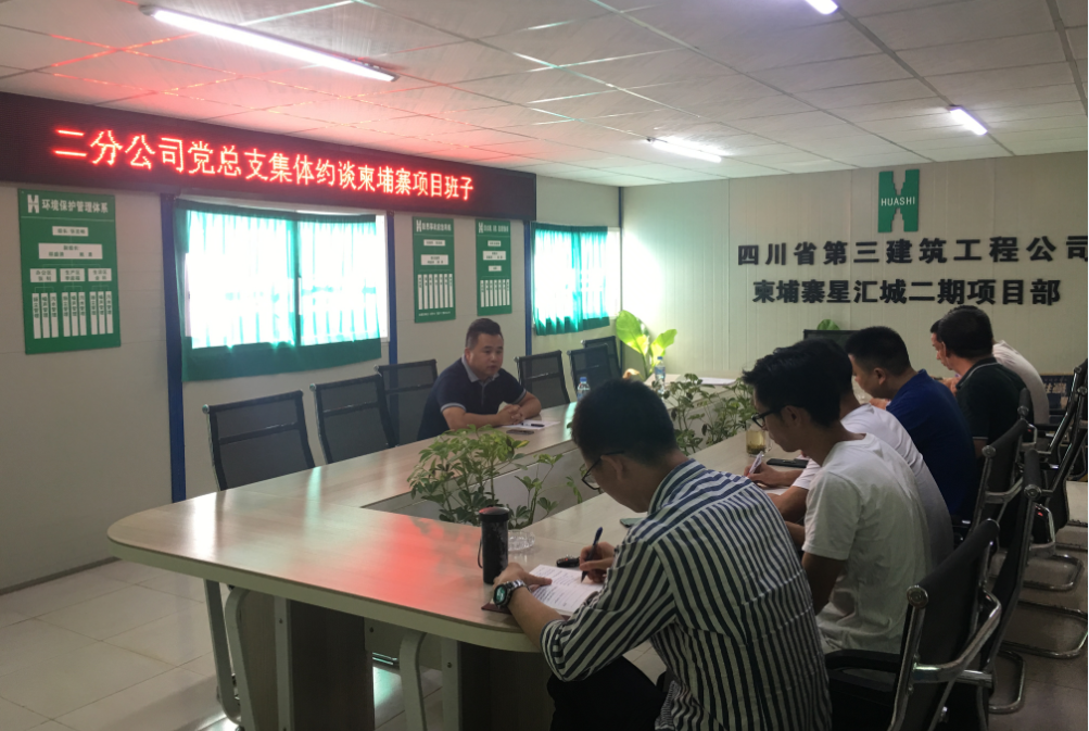 为贯彻落实集团、公司党委关于全面从严治党工作的部署要求,推动全面从严治党向基层延伸,加强海外项目和关键岗位权力运行的监督管理,近日,二分公司党总支在柬埔寨星汇城二期项目集体约谈柬埔寨项目班子。 分公司党...
