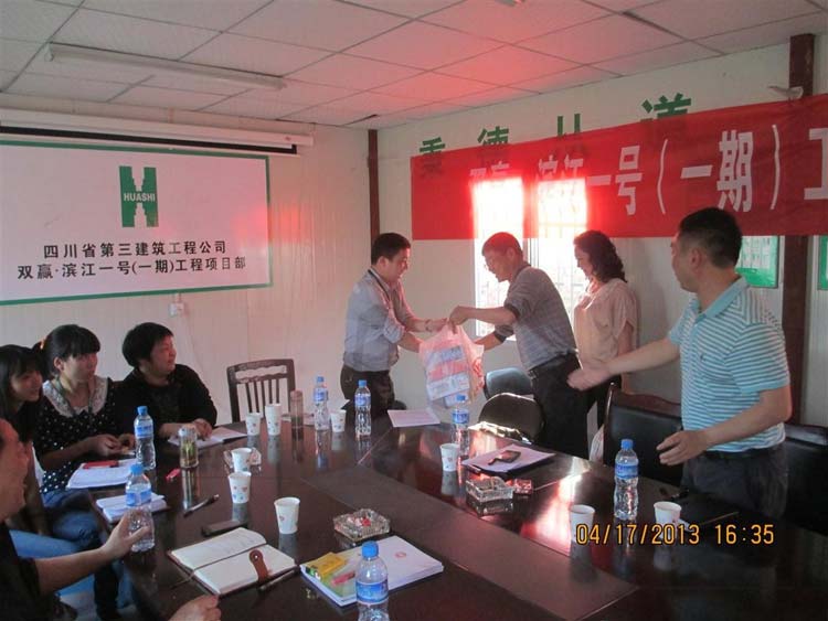 &2013年4月17日下午,公司工会主席郭俊清一行在重庆分公司班子成员的陪同下,赴双赢·滨江一号项目部,指导该项目部工会主席直选会议,并为项目部并慰问项目一线职工。 工会主席直选会议于4月18日上午进行,公司工会主...