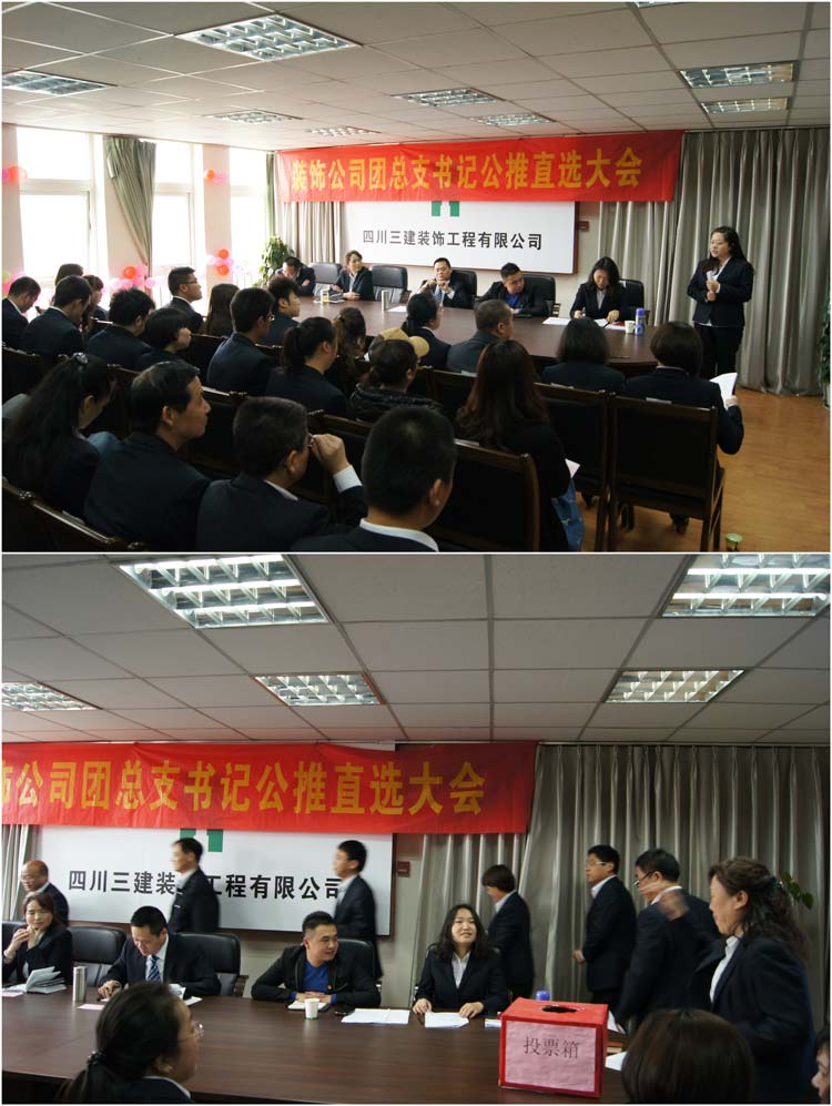 4月12日下午,装饰公司团总支换届改选暨团总支书记公推直选大会在分公司会议室召开。装饰公司领导班子全体成员、公司团委负责人出席会议,分公司青年代表、中层管理人员、机关全体职工参加会议。 本次公推直选候选人...