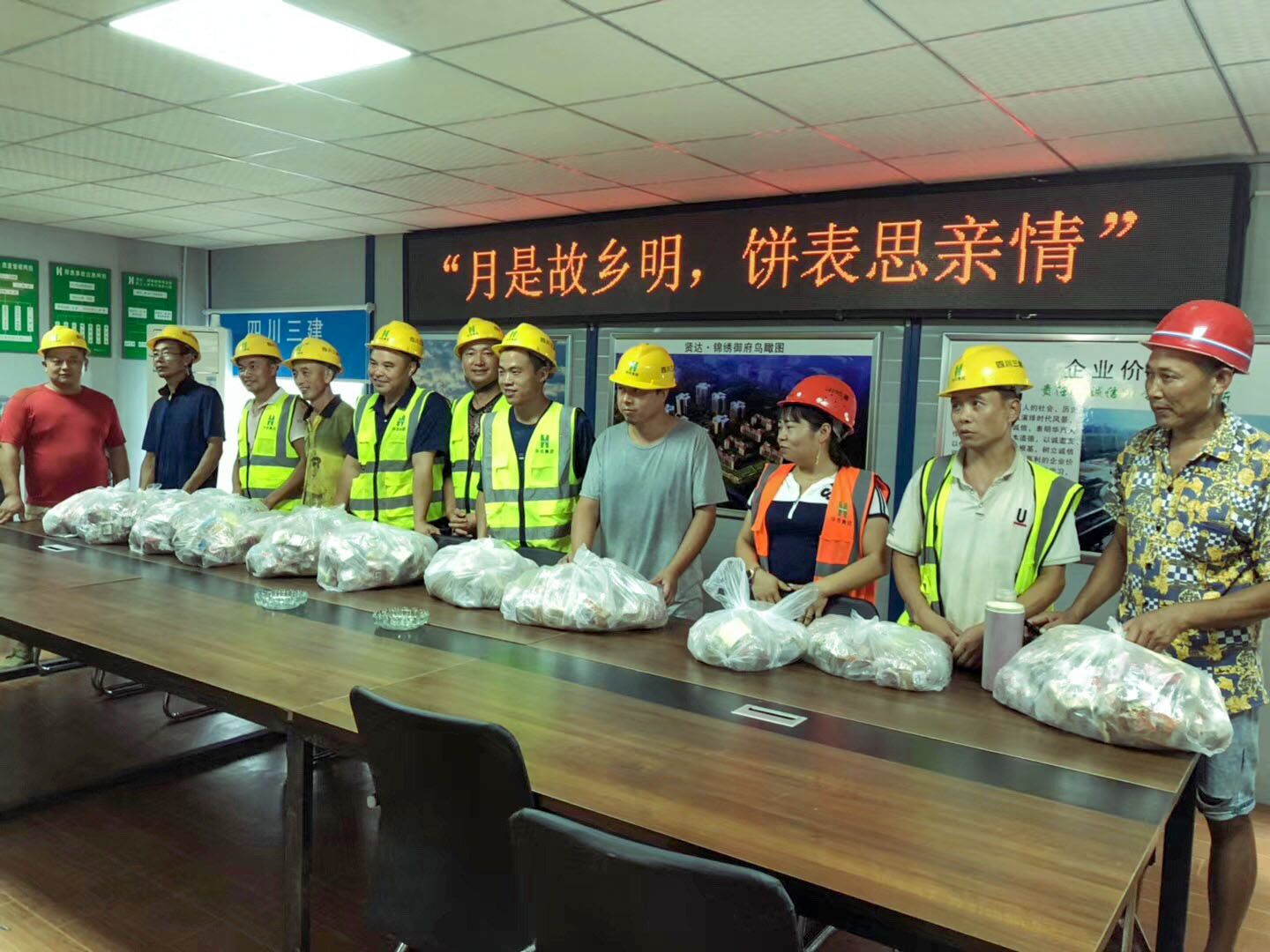 月到中秋分外明,人逢佳节倍思亲。9月11日,重庆分公司贤达·锦绣御府项目部开展以“月是故乡明,饼表思亲情”为主题的中秋节活动,提前为中秋佳节依然坚守在工作岗位上的项目职工和一线工人们送去了月饼,并带去企业...
