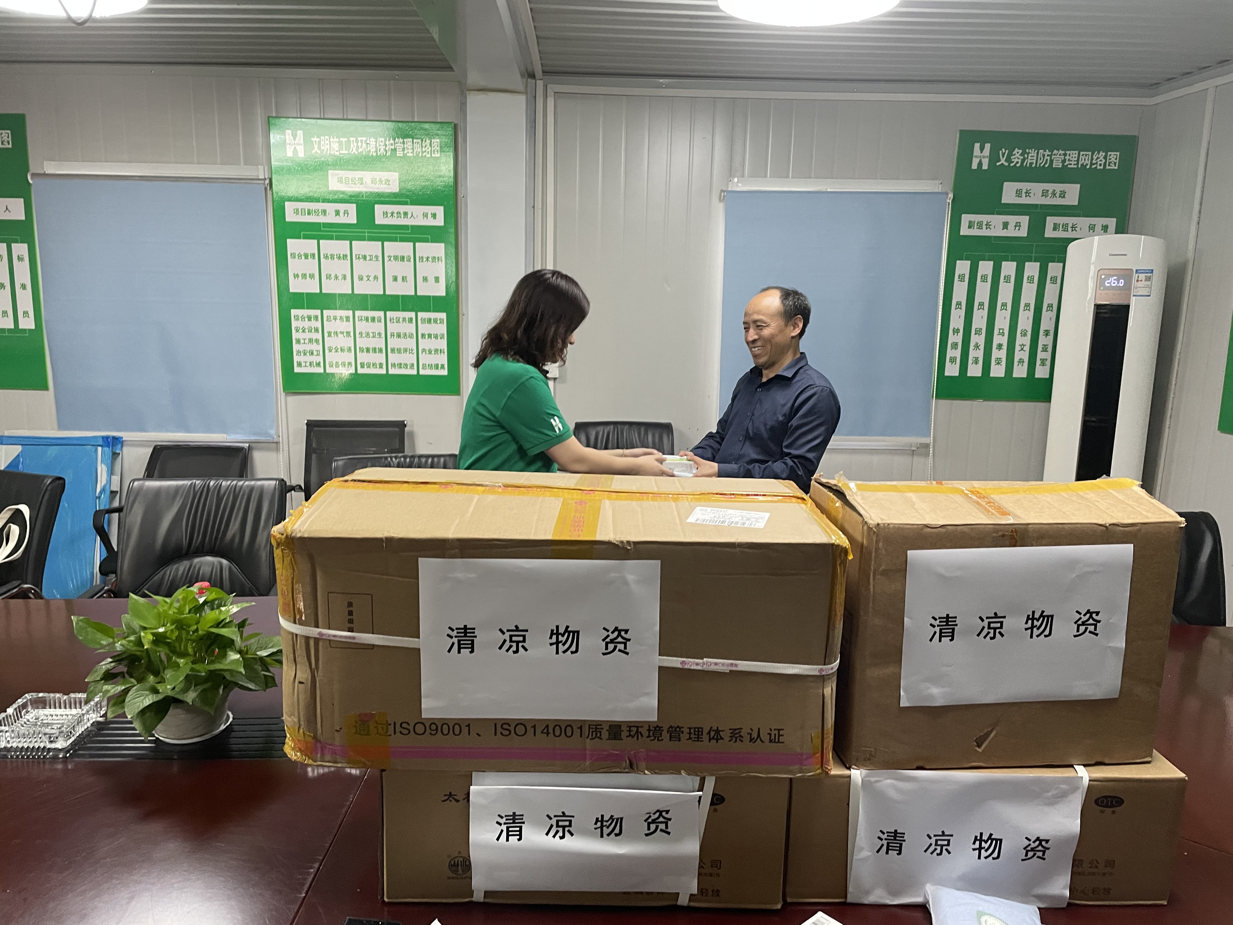 三分公司自贡融创项目 (文/图:黎迎春)7月15日,公司副总经理倪伟,工会女工主任一行到自贡融创·公园1751目开展“夏季送清凉”活动并对项目进行工作调研,为公司外区一线的员工送上防暑降温物品。 倪伟一行对施工现...