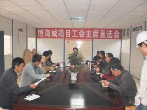 六分公司博海城项目工会主席直选 2011年4月1日下午,六分公司博海城项目召开项目工会主席直选会,十四名项目职采用无计名投票的方式选举出项目工会主席和工会委员会,分公司工会主席王兴举主持选举会。 遵照《工会法...