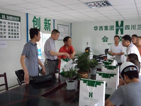 六分司工会“小暑”送清凉 7月7日上午,六分公司工会组织了“小暑送清凉”夏季慰问活动,分公司经理周君国、书记王兴举一行人来到新都博海城、建院体育馆、二重安装项目、二重土建项目四个施工建设工地,并为奋战在一...