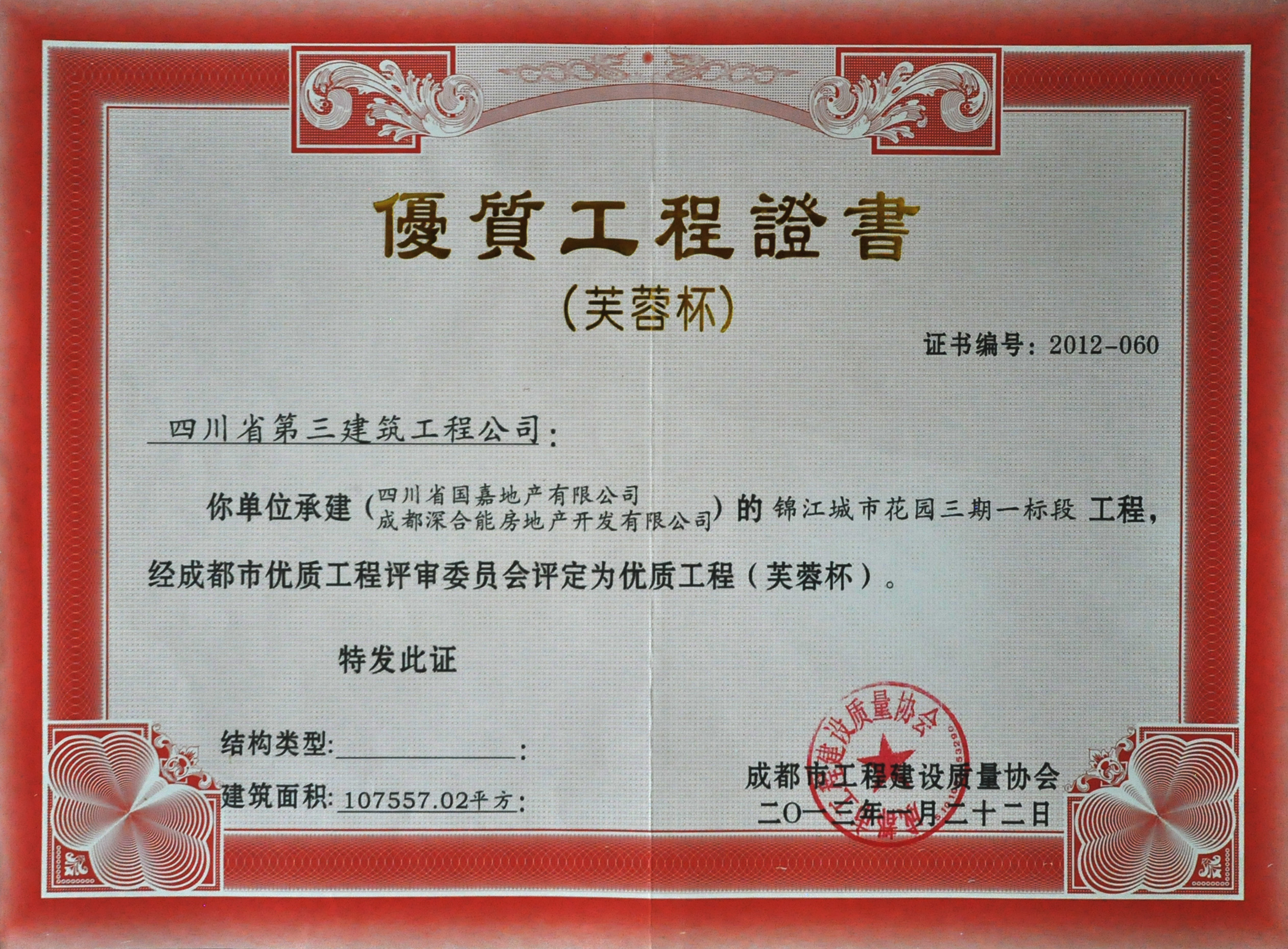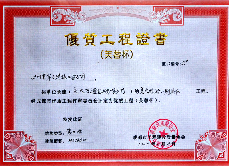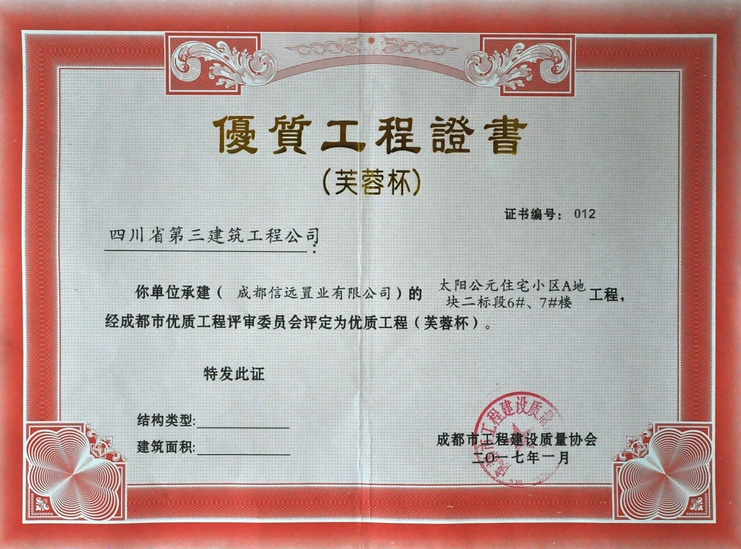 太阳公元小区A地块2标段6#7#楼荣获成都...