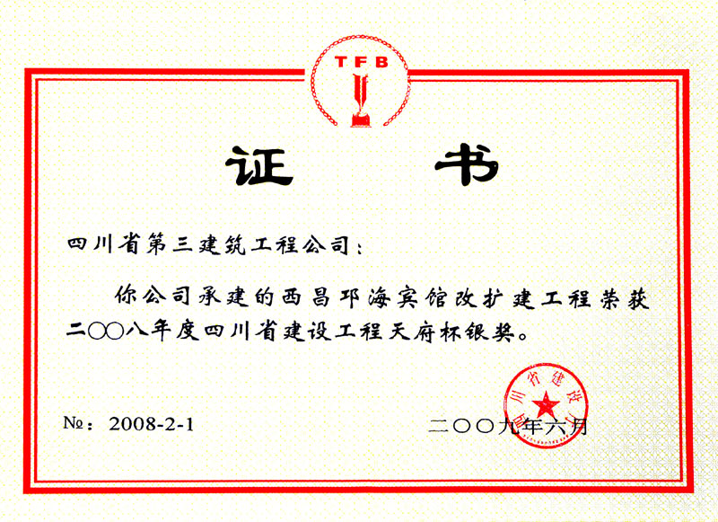 西昌邛海宾馆改扩建工程荣获2008年度四...