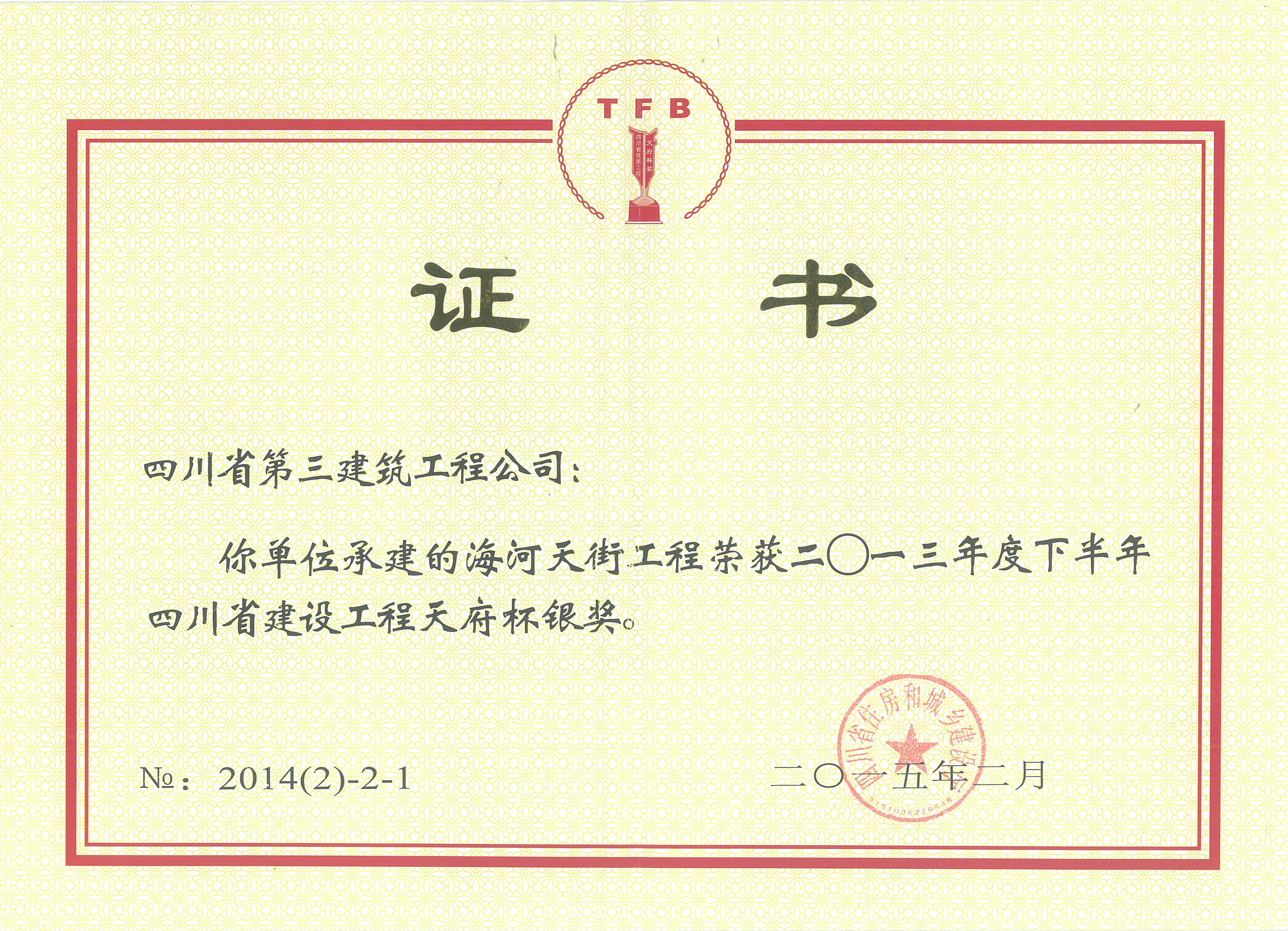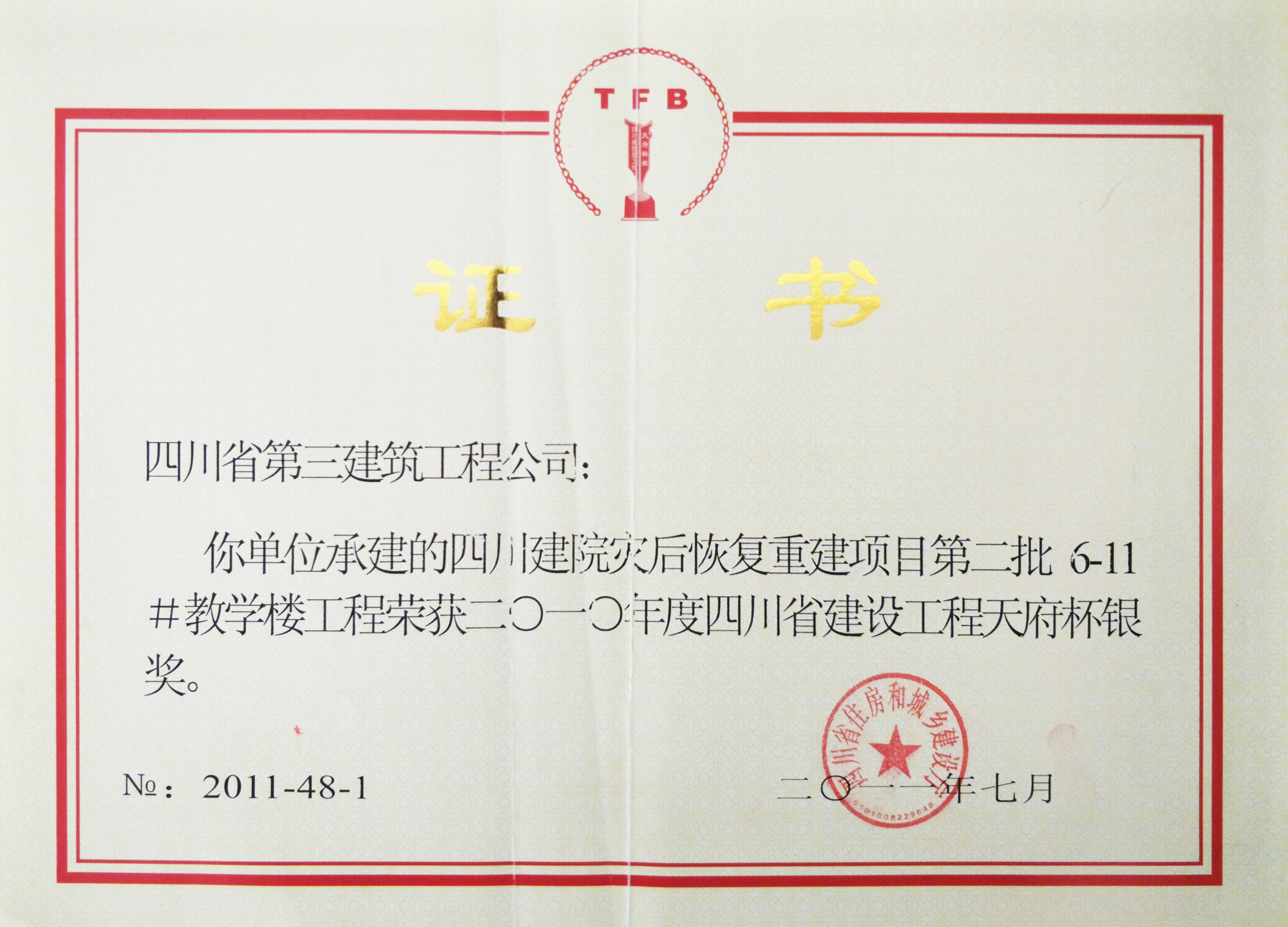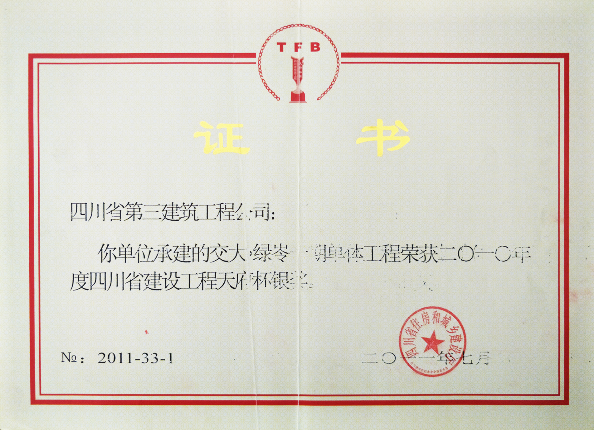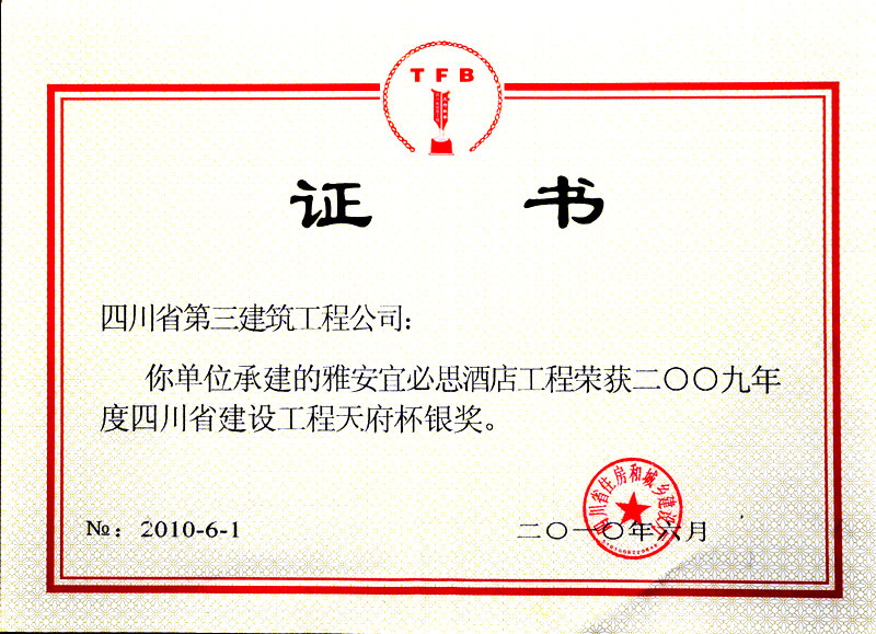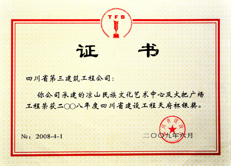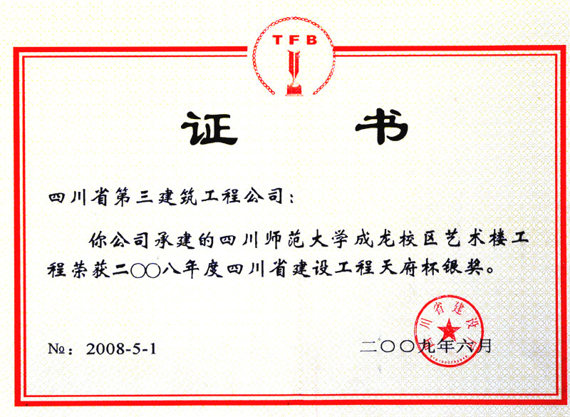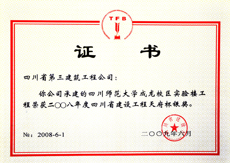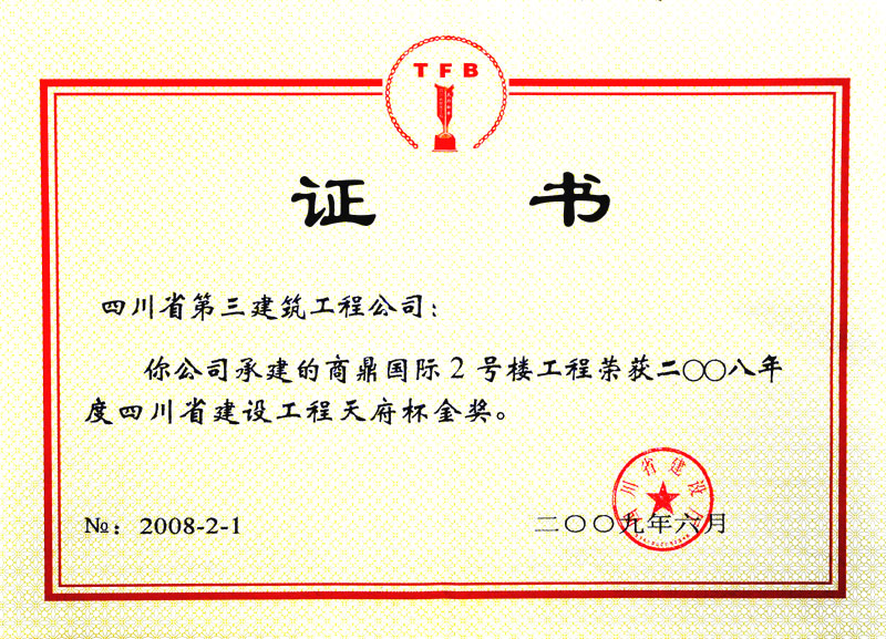 商鼎国际2号楼工程荣获2008年度四川省建...