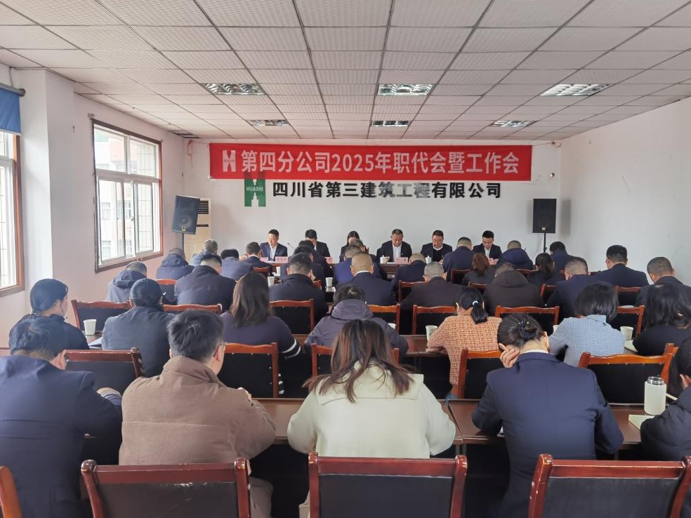 3月20日下午,第四分公司召开2025年职代会工作会,公司党委书记、董事长刘春到会指导,公司党委组织部/人力资源部负责人、第四分公司领导班子、各项目班子成员、职工代表及机关全体工作人员共计50余人参加会议。