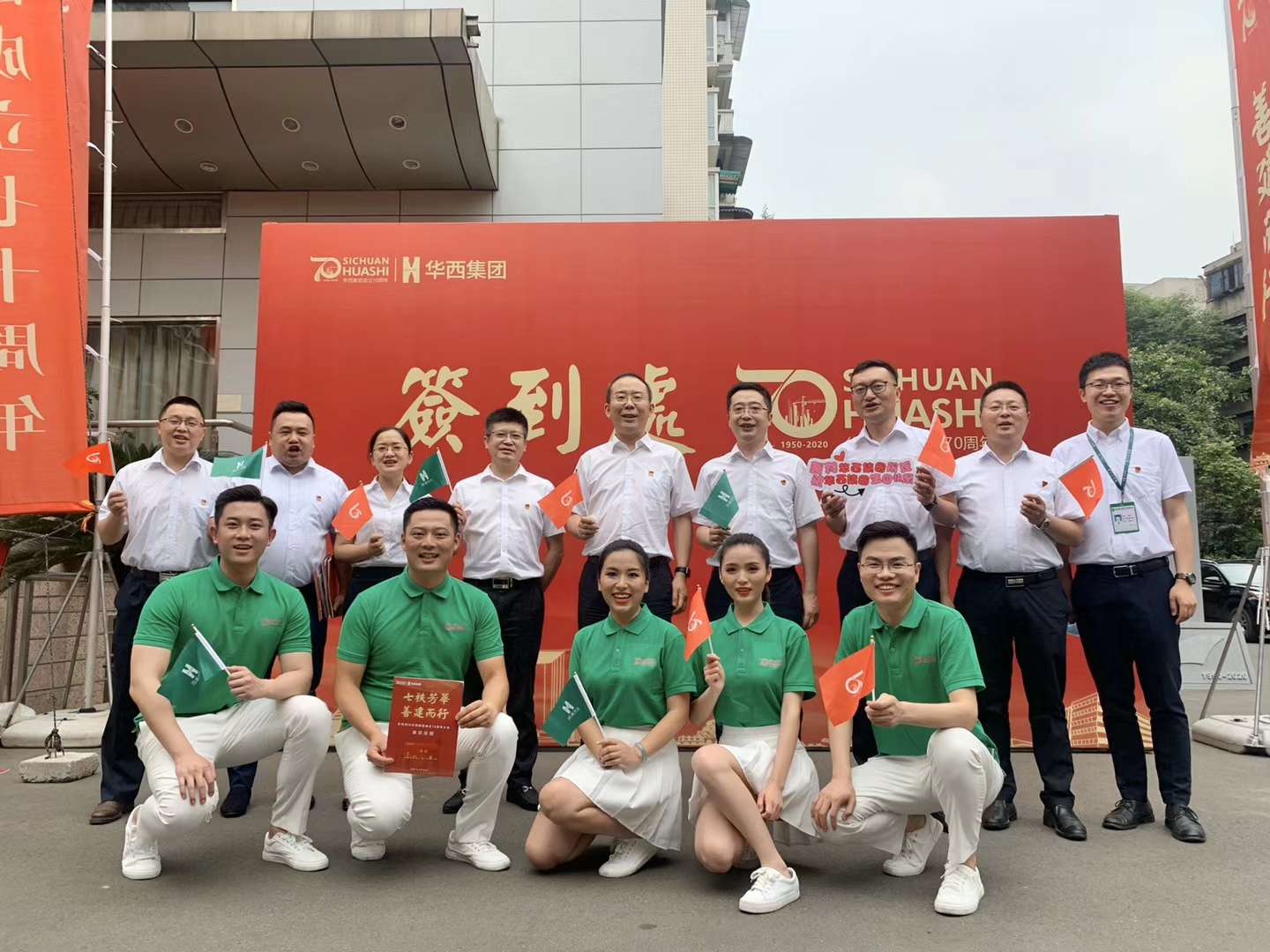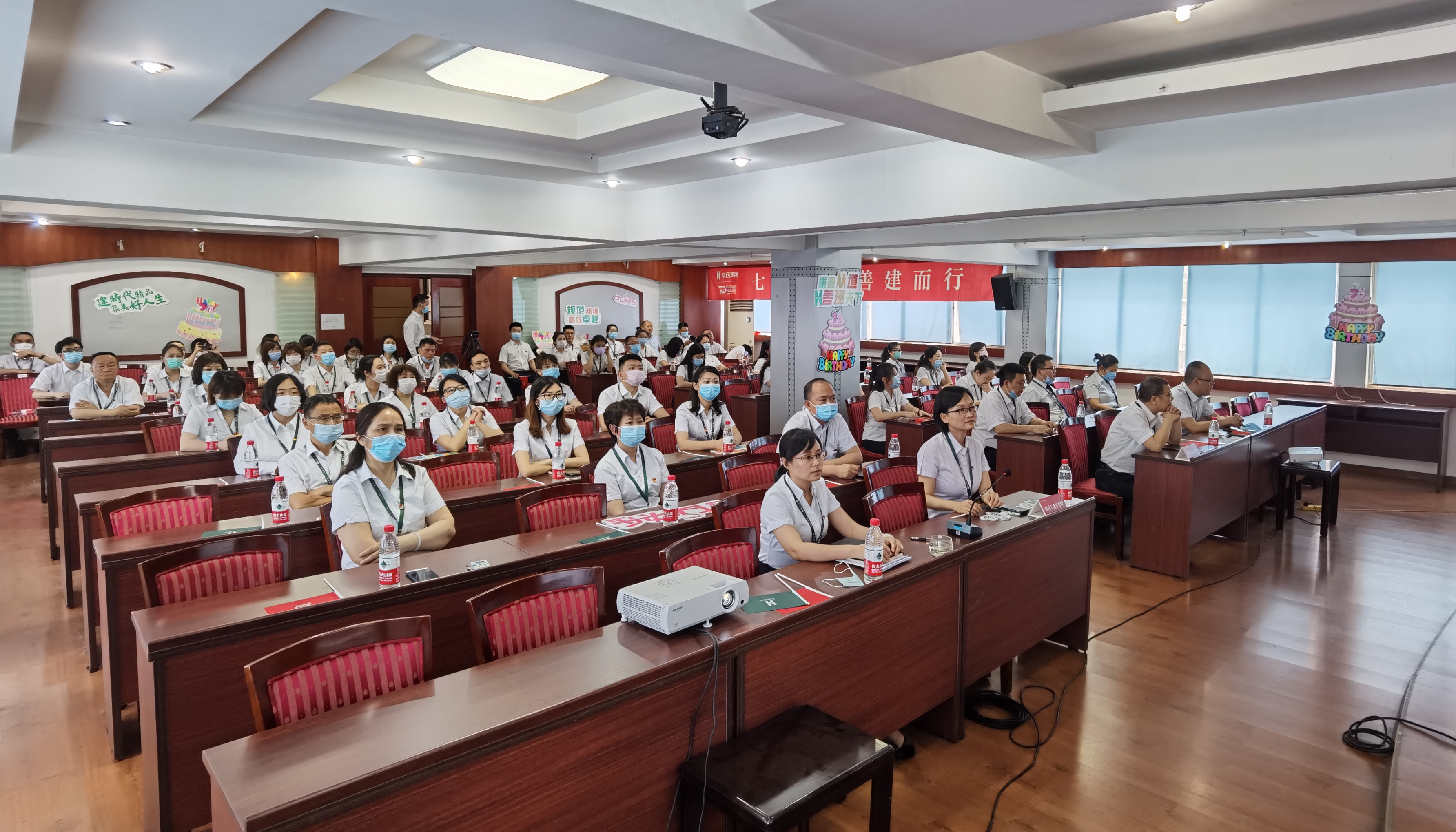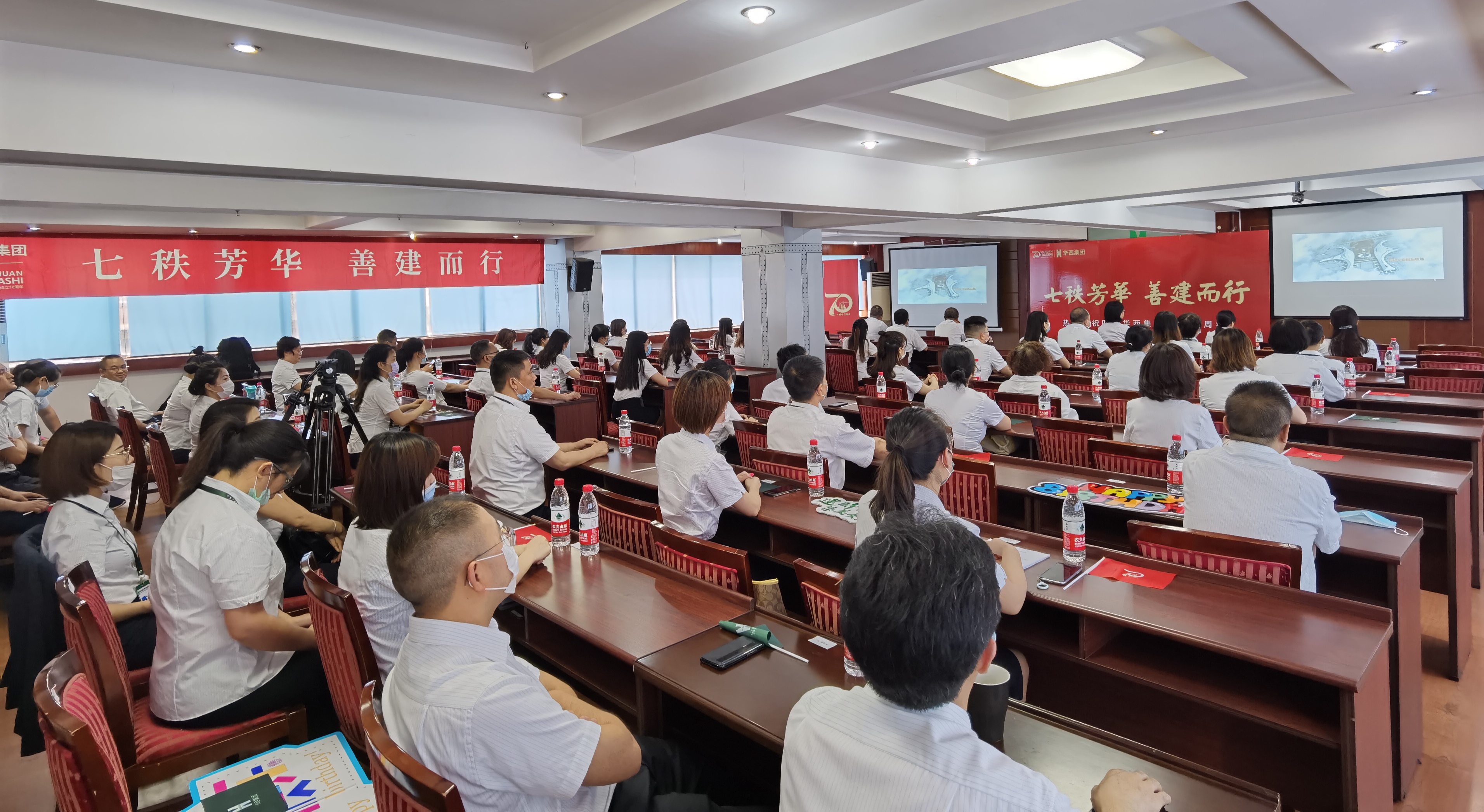 为热烈庆祝集团公司成立70周年,5月20日,集团公司举行庆祝华西集团成立70周年大会,公司设置分会场同步观看大会直播,共同见证这一历史时刻。公司在家领导胡剑、陈智出席活动;总经理助理、各部门负责人、下属各单位党政负责人、职工代表等近70人参加活动。
