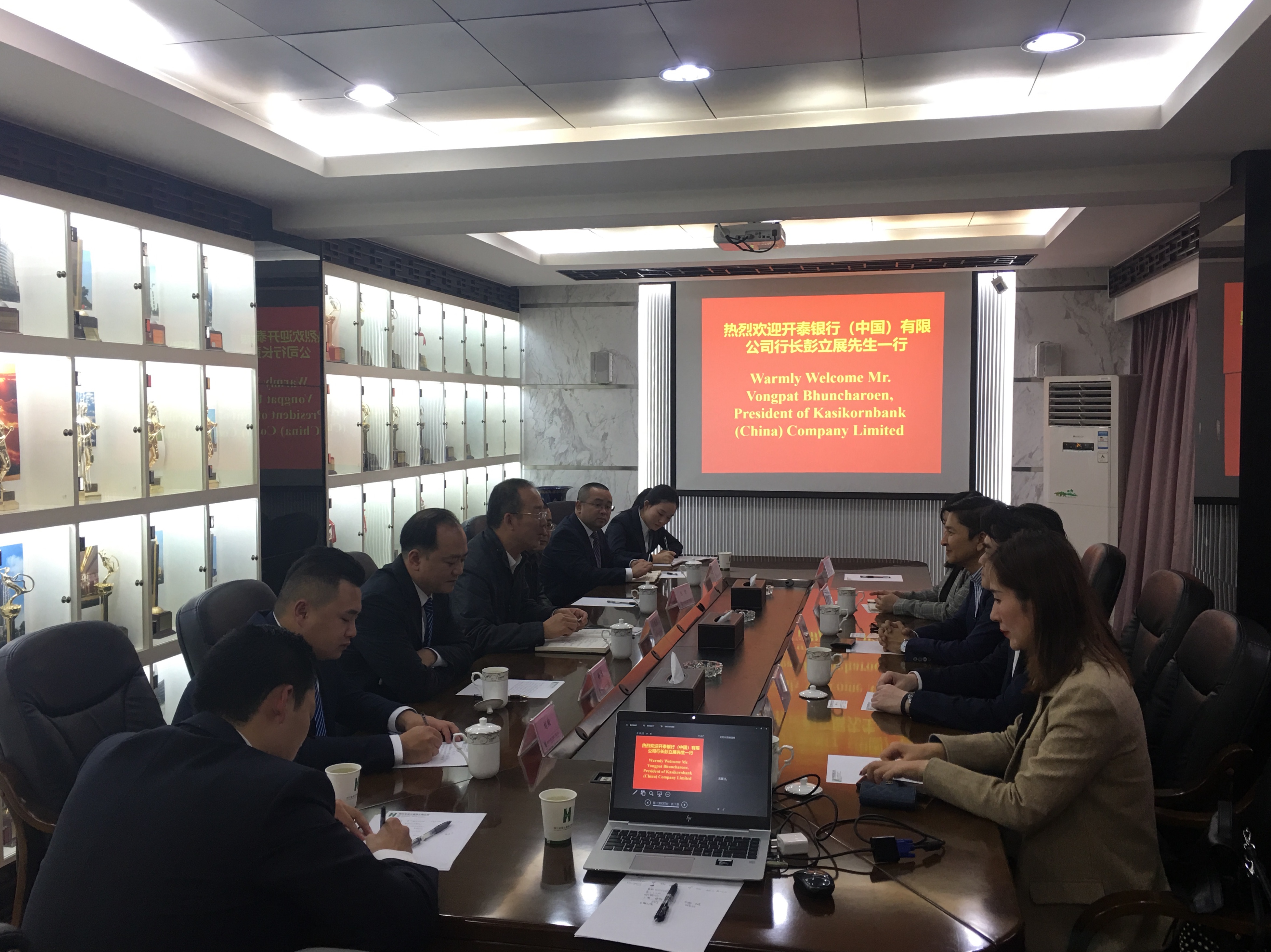 11月14日,开泰银行(中国)有限公司行长彭立展一行赴公司就三公司柬埔寨片区项目开展合作交流会谈,公司党委书记、董事长范晓晋,公司总会计师陈智,公司资金管理中心经理,二分公司党政负责同志参加了交流会。