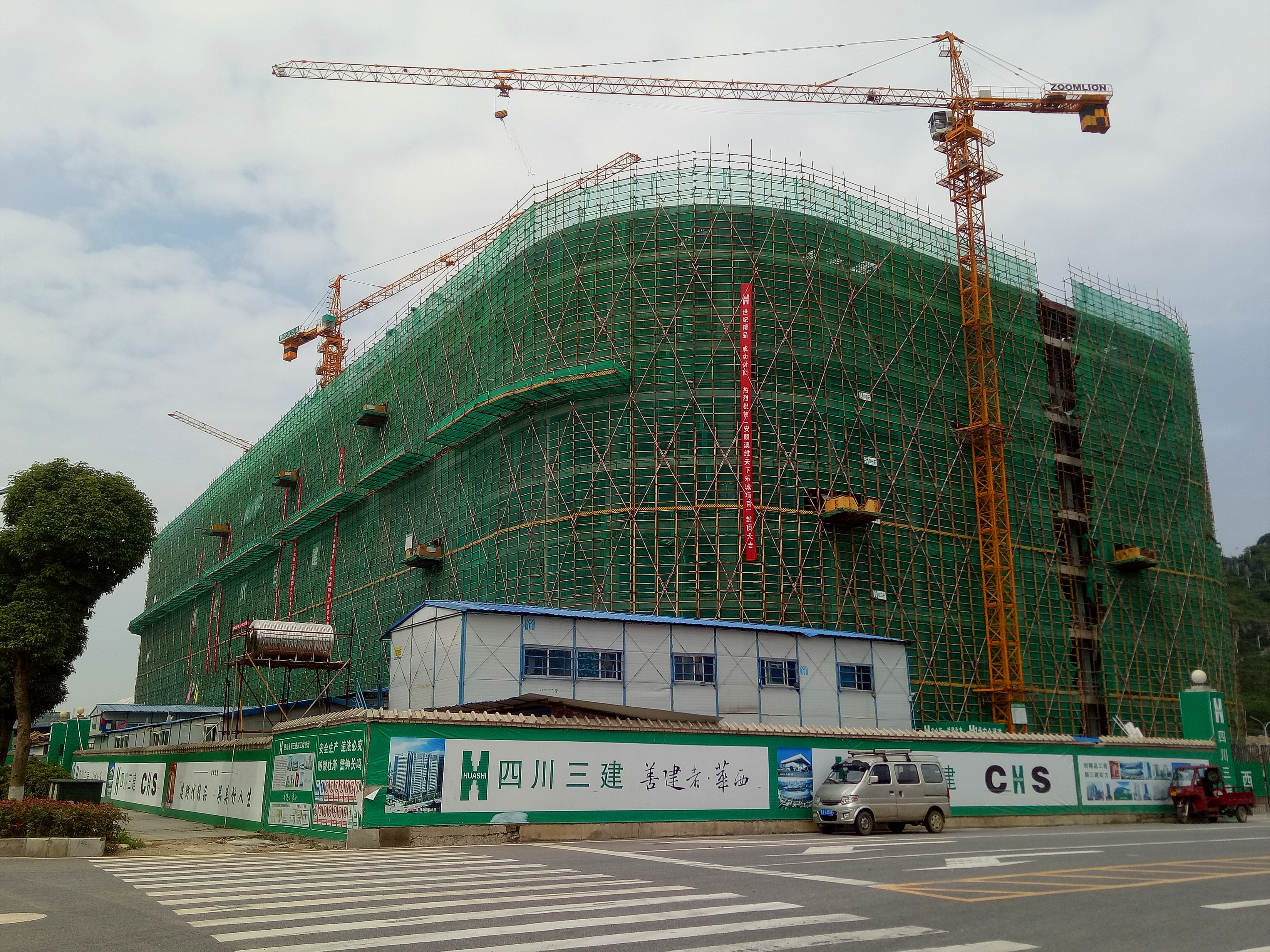 进入6月份,雨水增多,尤其是6月中旬后,安顺市连续十天大雨,给施工带来极大困难,而建设方要求的6月底封顶时间迫在眉睫。为了确保主体顺利封顶,项目部精心组织、科学管理,研究制定雨季施工方案,保证各种主材、周材、辅材的及时供应,为工人购置200多件雨衣,在条件允许的情况下,组织人员冒雨施工。项目部管理人员也全力以赴奔走在工程的各个角落,检查各项工序的完成情况,及时处理遇到的施工问题,保证工序搭配、流水施工作业正常进行。最终在项目部的日夜奋战下,工程主体顺利封顶,向建设方和当地政府交上了一份满意的答卷。