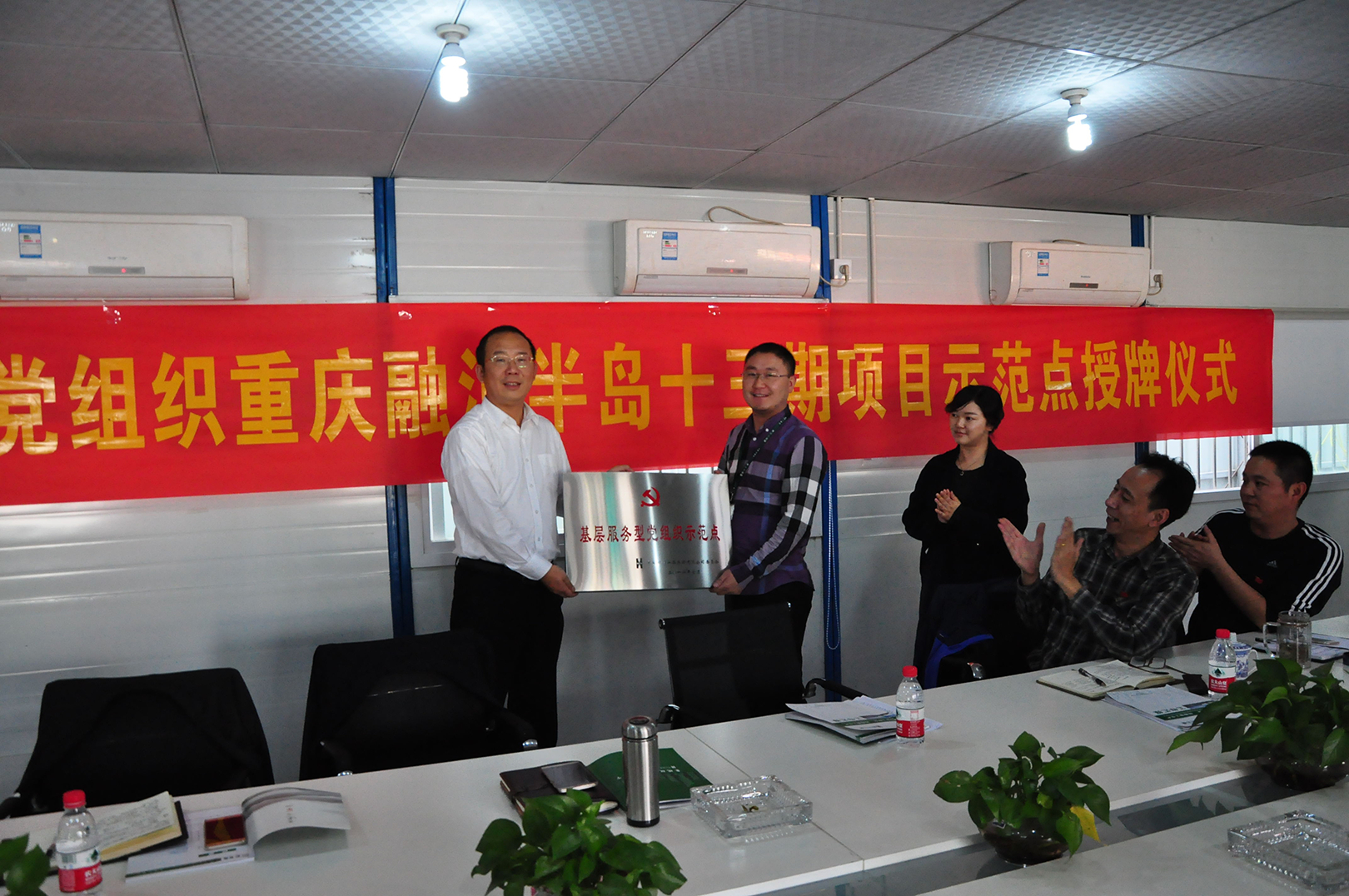11月18日下午,集团基层服务型党组织重庆融汇半岛十三期项目示范点授牌仪式在该项目隆重举行。公司党委书记、董事长范晓晋出席授牌仪式,公司党工部、团委负责同志,六分公司党总支书记、工会主席,六分公司总工程师,融汇半岛项目班子以及六分公司部分机关和项目管理人员参加了授牌仪式。此外,重庆分公司班子成员及部分机关、项目管理人员也前来参观学习。