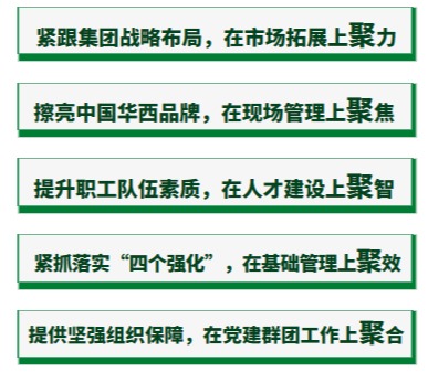 冯刚在行政工作报告中提出,2023年要以习近平新时代中国特色社会主义思想为指导,全面贯彻集团第三次党代会和公司第一次党代会精神,牢牢把握“速度、质量、创新、激励”八字方针,用好“三劲”,落实好杨斌董事长在集团2022年工作会上的讲话和马林总经理工作报告精神,坚持“5个聚”的工作举措: