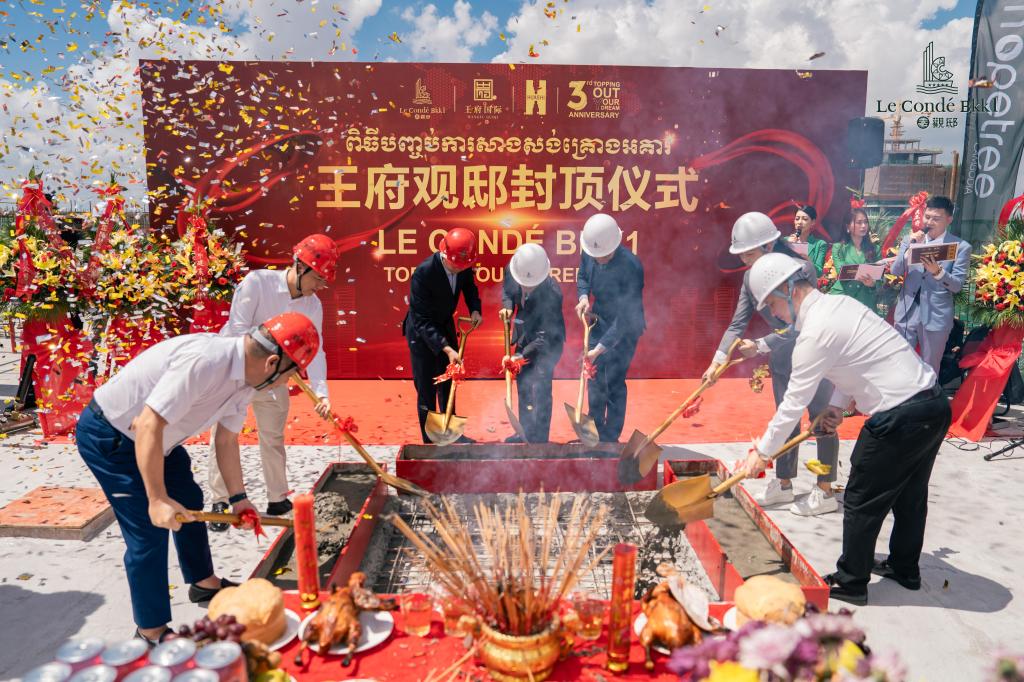 “鼠年破土打桩基,今日披红现伟姿。”10月26日上午,随着主体结构最后一方混凝土浇筑完成,公司在柬埔寨承建的超高层建筑——金边王府·观邸项目顺利封顶,标志着项目正式进入新的施工阶段。