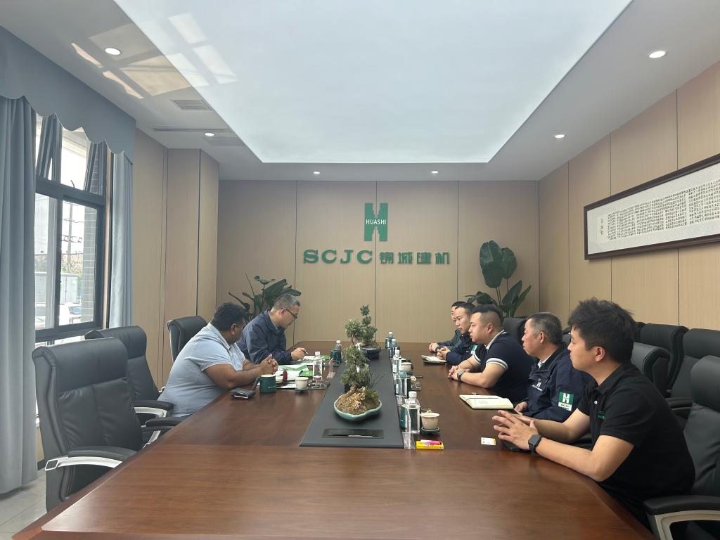 近日,印度公司(CANGRAFT) 总经理MR.ARUN BISHNOIAl到锦城建机开展合作交流。锦城公司总经理刘翔及生产总监、技术总监、市场营销中心负责人等参与会谈。