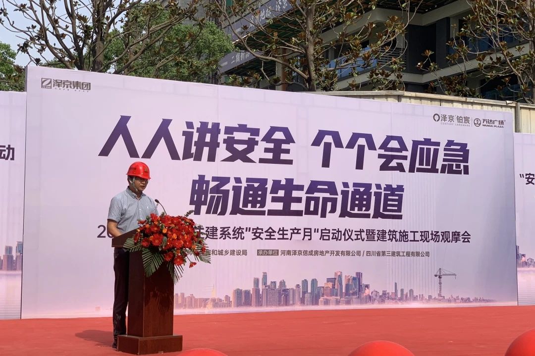 为贯彻落实洛阳市偃师区住房和城乡建设局2024年“安全生产月”活动工作安排,提高项目管理人员安全生产意识、落实安全生产责任制。6月7日,重庆分公司泽京铂宸西地块项目联合河南泽京信成房地产开发有限公司以“人讲安全、个个会应急-——畅通生命通道”为主题,举行2024年“安全生产月”启动仪式暨建筑施工现场观摩会。洛阳市偃师区住房和城乡建设局常务副局长张宏杰,各建筑施工、市政道路及监理单位相关负责人共计150余人参会。