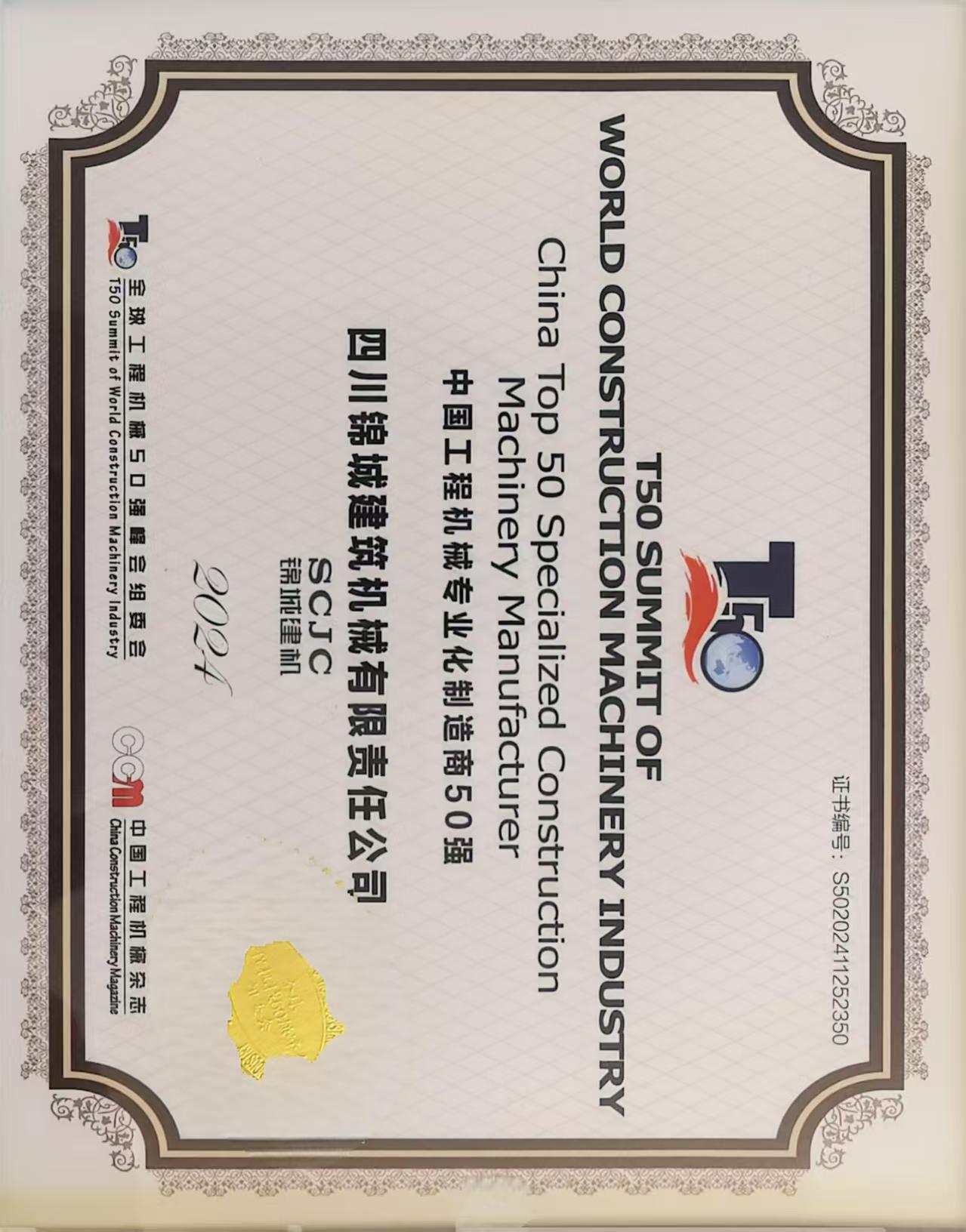 11月25日,备受瞩目的全球工程机械50强峰会(T50)在上海隆重召开。此次峰会汇聚了全球工程机械行业的领军企业,在会上,锦城公司凭借近几年的转型成果及创新能力,蝉联中国塔式起重机制造商10强,并首次荣登中国工程机械专业化制造商50强榜单,锦城公司法定代表人、总经理受邀出席并接受颁奖。