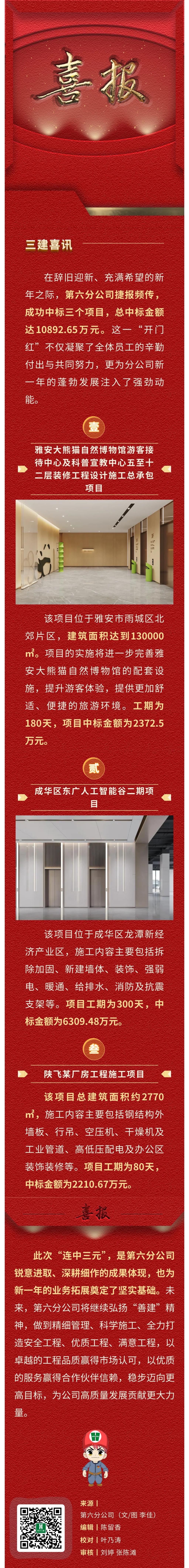 上一条:【三建·头条】看锦城公司双平臂抱杆如何“水上绣花” 下一条:【三建·头条】集团党委副书记、副董事长、总经理杨如刚亲切看望慰问公司离休老干部李章平