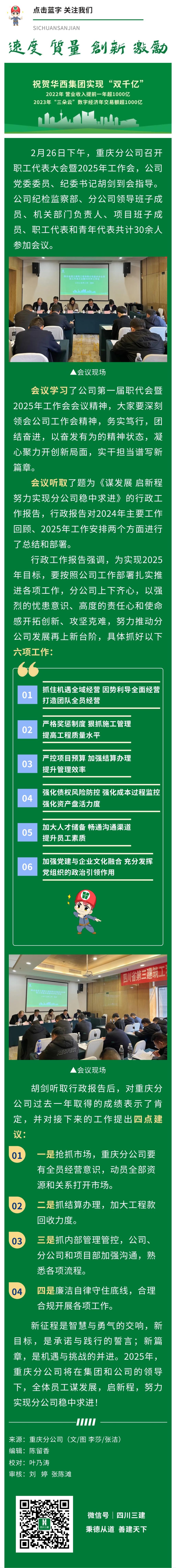 上一条:【三建·喜讯】九工程公司再获凉山州通报表扬 下一条:【三建·要闻】向“新”而行 以“质”致远 ——三华劳务公司召开2025年工作会暨职工大会