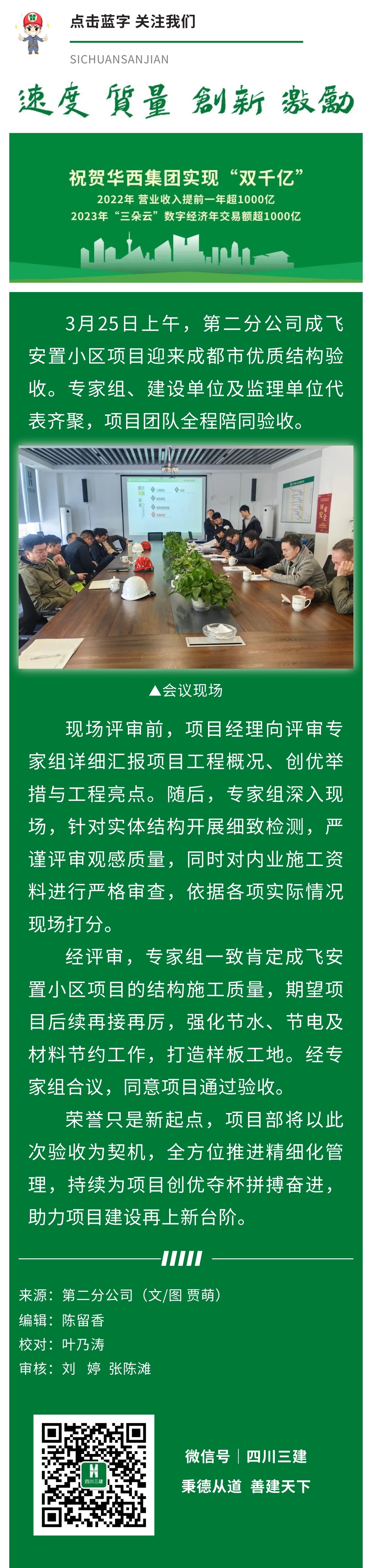 【三建·一线】第二分公司成飞安置小区项目通过成都市优质结构验收