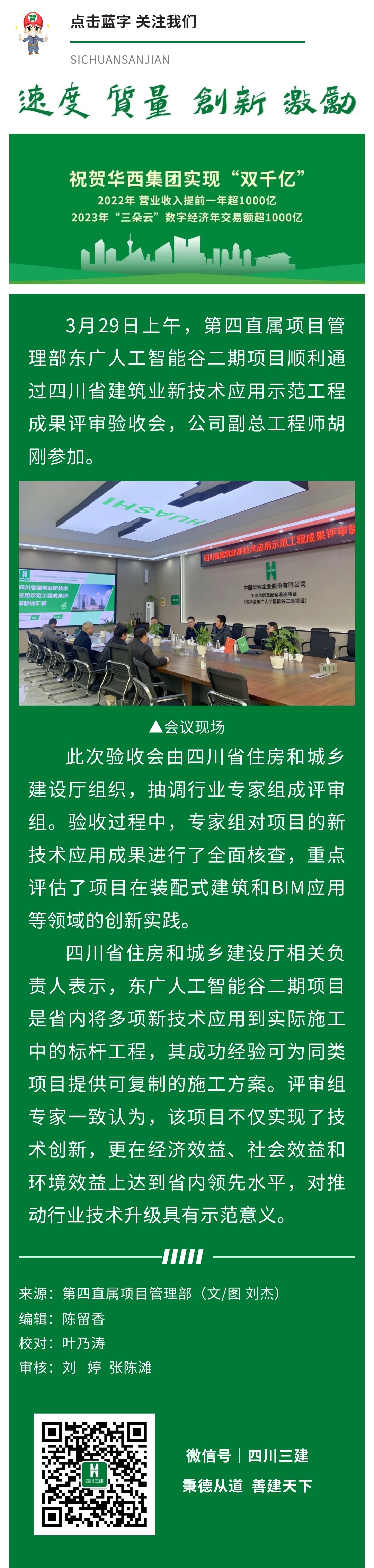 【三建·一线】东广人工智能谷二期项目顺利通过四川省建筑业新技术应用示范工程评审验收