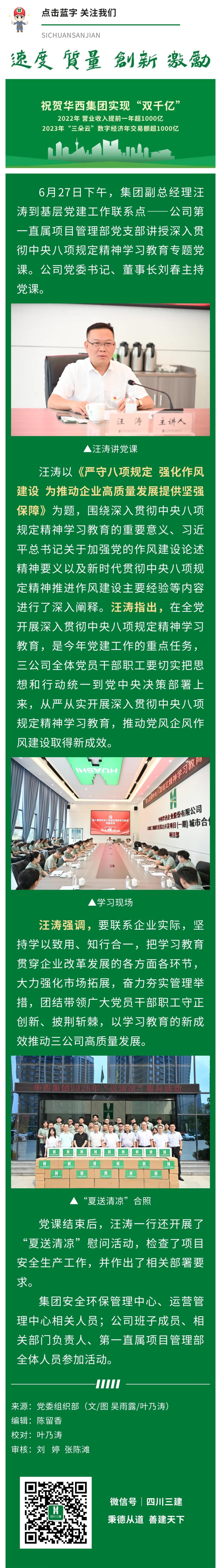 【三建·头条】集团副总经理汪涛到公司一直属项目讲授深入贯彻中央八项规定精神学习教育专题党课