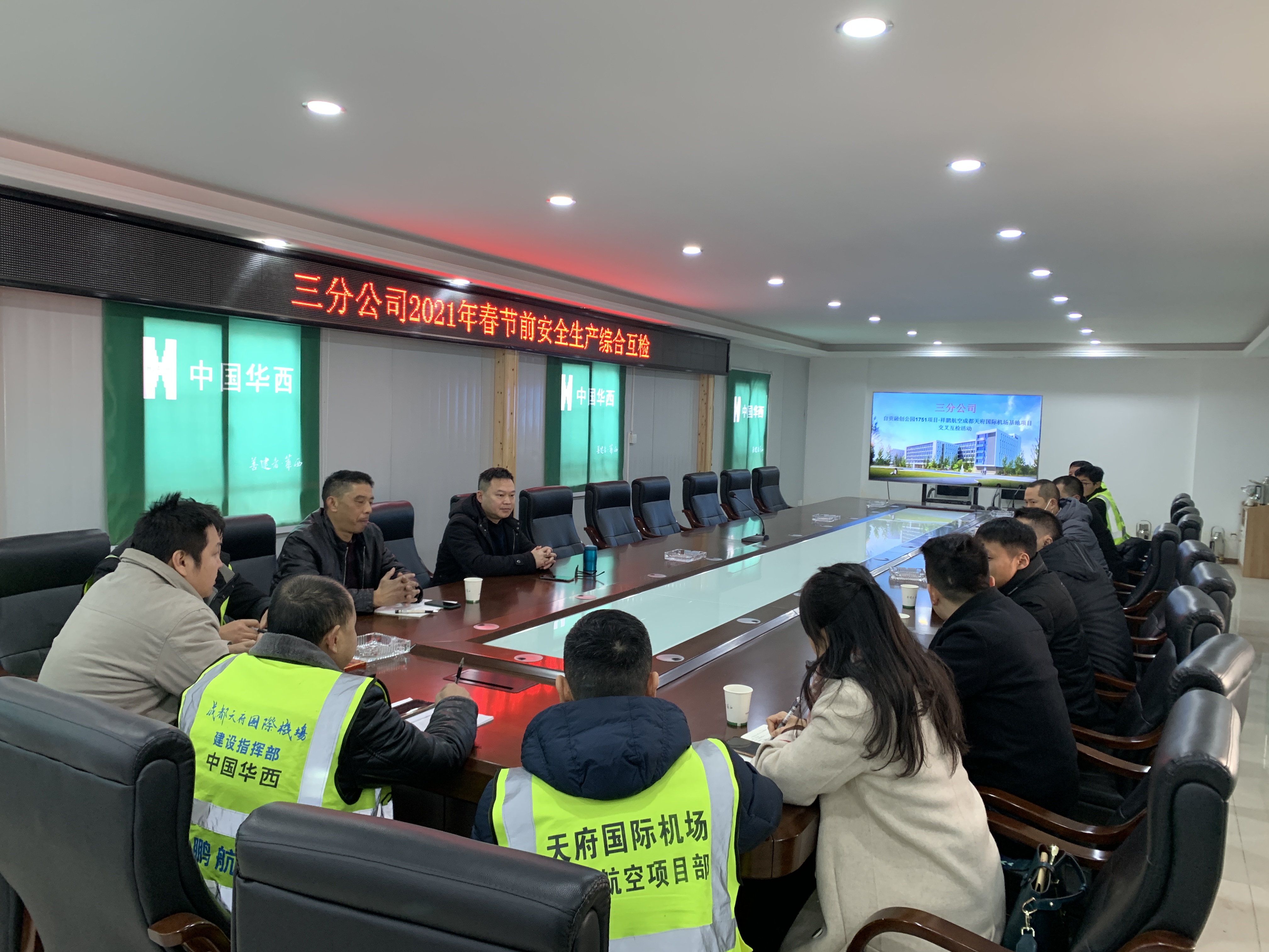 祥鹏航空天府国际机场项目部、自贡融创公园1751项目部分别由项目经理带队赴对方项目部,结合公司2020年度综合大检查标准,从施工技术、工程质量、安全环保文明、工程进度、生产资源等方面进行交叉互检,并在检查后召开座谈会,就检查情况提出整改建议,还就双方项目部在施工管理中的好做法、好措施进行交流学习。