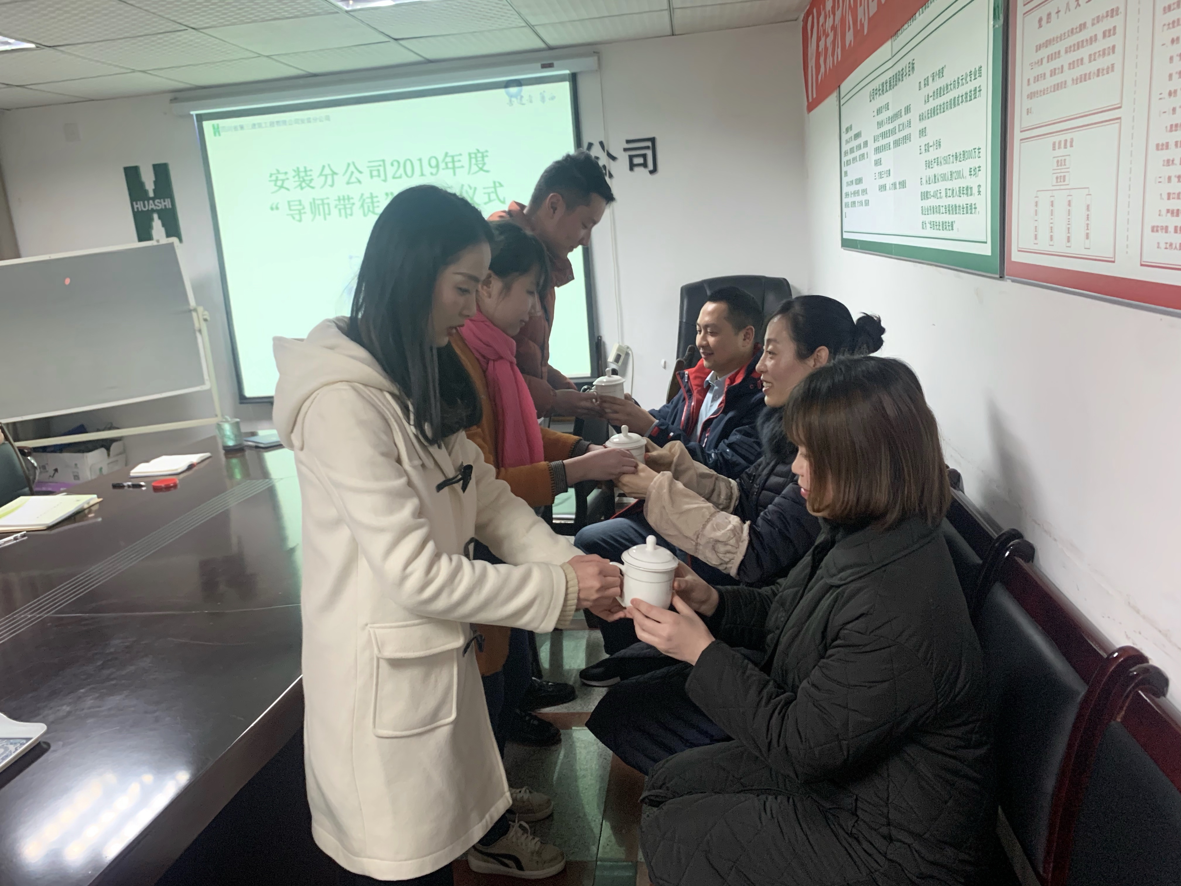 安装分公司团总支组织开展2019年“导师带徒”签约仪式。仪式上,安装分公司班子结合分公司多年的“导师带徒”经验,对青年成长提出希望和要求,“师父领进门,修行靠个人”,师父要有荣誉感、责任感,带领徒弟不断成长成才,徒弟要坚持勤学上进,努力担当作为,不断增强各项本领。师父也结合自身经历对徒弟进行经验分享。随后,徒弟向师父拜师敬茶,在一声声“师父,谢谢您!师父,请喝茶”的感谢声中,安装分公司2019年三对师徒关系正式确立。(文/李莎莎 图/张玉)