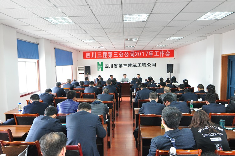 三分公司总经理首先传达学习了公司2017年工作会暨职工大会精神,对公司董事长、党委书记范晓晋作的行政工作报告进行了传达,并作了题为《奋发进取、共克时坚》的工作报告。回顾总结了分公司2016年度的经营管理、施工生产工作等情况,分析了存在并亟待解决的问题,提出了2017年重点要抓好的五项工作:一是转观念,补短板,破解经营工作的瓶颈;二是抓好项目的各项基础管理工作,提质增效;三是大力推动新技术的创新与应用;四是引进和培养高素质人才,稳定职工队伍;五是发挥党群组织的政治思想导向和桥梁纽带作用,共克时艰。