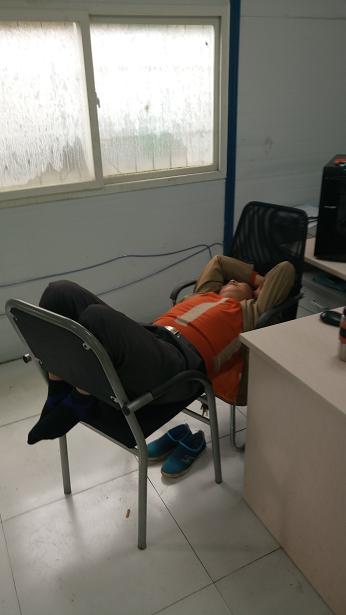 樊大爷还有两年就要退休了,在项目一线摸爬滚打多年的他,向来以“脾气直,做事实”而著称。由于甲方图纸多次变更,越变越复杂,1号楼第一层就有八个标高,一个单元有三套轴线体系。用樊大爷的话来说,简直就是在修“布达拉宫”。就要打混凝土了,53岁的樊大爷下午刚测完标高,下午匆匆刨了口饭,晚上又要去守混凝土到半夜2点,第二条早上5点半便拉着小王,趁木匠还没把材料吊上板面来前,先把线放出来,否则等材料一吊上来,就麻烦了。到早上7点,线放完了,樊大爷才就着工长办公室的椅子匆匆睡去。待会儿,他还要去检查2单元的钢筋。
