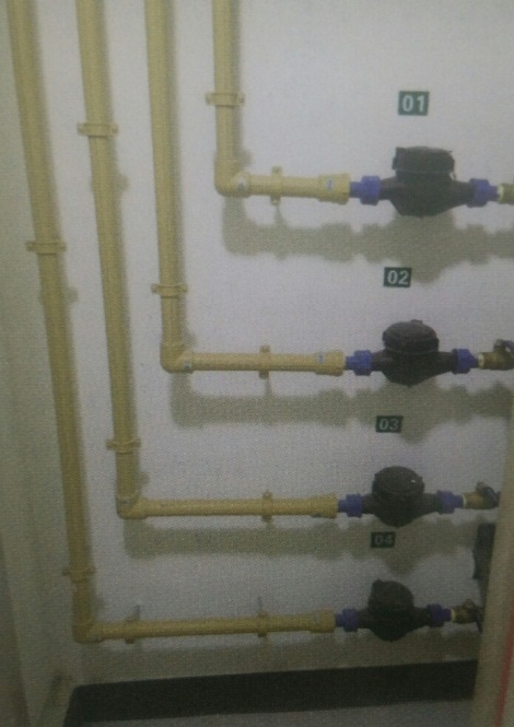 最后,我们参观了地下室,同样有很多的亮点,比如设备间、机房里的管道分色、方向标识、设备基座等等都用颜色各异的涂料标明清楚,使人一目了然;在配电室里,地面上操作区、通道等分区严格,保证了人员安全,接地处理也非常细致,而且楼道内、房间内的管道穿墙处、穿楼板处,均做套管封口,观感效果极好。另外,室内的给水、消防、通风的管道布置合理、排列整齐、支架设置均匀;排水管支架规范设置,全部经过了加固处理;给水系统横平竖直、标识清楚、水表安装规范,这些都是值得我们学习的地方。