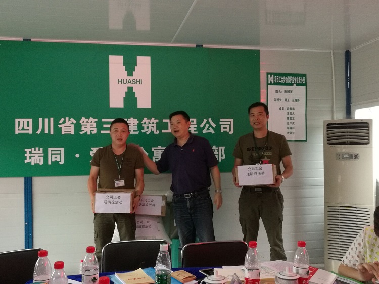 验收工作结束后,三公司工会还在项目部开展了“送清凉”活动,为项目部送来绿豆、白糖、茶叶及藿香正气液等清凉防暑用品,在炎炎夏日为坚守岗位的职工送上了公司的关爱。