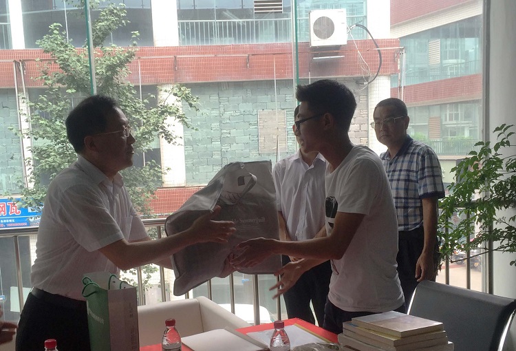 最后,武主席向两名驻村干部分别赠送了集团精心选购的《最新农村党支部书记工作规程方法与案例启示》、《中国精准扶贫攻坚十讲》等内容丰富的书籍,同时也送上了办公文具、生活用品和防暑降温药品,表达了集团对驻村干部深切的关爱。两名驻村干部深受感动和鼓舞,均表示将认真做好驻村帮扶工作,不辜负组织的重托,不辱使命,力争为集团增光添彩。