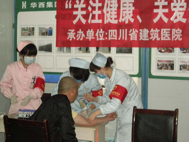 为普及健康知识,提高农民工自我保健意识和能力,五月十七日,由建筑医院和疾控中心专家学者和医生护士到我公司光华逸家工地现场为一分司、二分司的农民工兄弟义务开展以“关注健康、关爱生命”为主题的大型医疗服务活动。