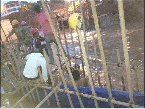 2012年7月3日,凉山州西昌市普降暴雨,据称降雨量为凉山近40年来之最,四分司在建工地海河天街、海门渔村、刘家小桥施工遭受了特大暴雨和肆虐洪水的影响。根据气象台站的预报消息,四分公司领导高度重视,分公司经理王红莲在第一时间赶赴西昌,亲临一线部署抗洪救灾和及时恢复生产工作,把因灾影响和损失降至最低。