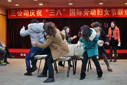 联欢会在“女人是老虎”的趣味表演中拉开了序幕。动人心弦的琵琶演奏,悠扬悦耳;独唱、重唱和小合唱把大家带入欢乐的旋律,共鸣起节日的快乐;欢乐的锅庄激起同舞同乐情绪,啦啦操更是舞动起五彩的炫丽,给联欢会倍添激情和欢乐。最令人捧腹大笑的是互动节目,“抢板凳”、“三人站报纸”、“萝卜蹲”和“自画像”使参加联欢会的女职工喜不自禁,迸发出欢快的笑声。