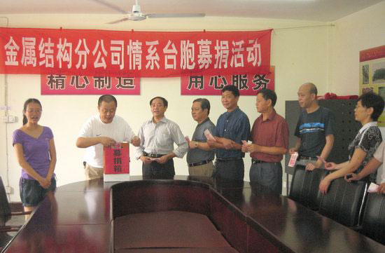 “莫拉克”台风侵袭台湾后,给台湾中南部造成了重大的人员伤亡和财产损失,大陆各界对台湾“莫拉克”台风受灾情况极为关注。三公司各级组织积极响应集团的号召,踊跃开展“情系台胞,四川感恩”募捐活动。在这次募捐活动中,公司领导带头捐款,基层单位职工也纷纷伸出援助之手,一些到公司办事的外来人员也积极捐款,为帮助台湾同胞尽快重建家园贡献一份力量。在这次募捐活动中,公司有997名干部职工自愿捐款,共收到捐款65085.00元。这次捐款已全部上交集团工会,并由集团工会统一汇入四川省红十字会救灾募捐专用账户。