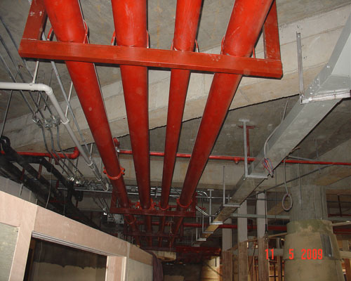 在这次活动中,他们认真听取了该工程机电安装项目部经理张浩的如何配合土建开展安装施工的情况介绍,参观了墙面配管、开关、插座盒等的安装情况,以及给排水、空调水、消防管道、供热系统、设备机房的布局和安装。特别是对设备多、管道多的泵房、空调机房,就如何排列整齐,达到美观效果,询问得非常仔细、认真,并作好记录,留下了图片资料,以便自己在图纸深化过程中,规避在布局上出现“打架”等不合理之事发生,对指导施工、积累经验,打下基础。