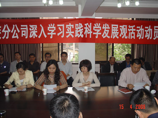 三公司党工部部长、深入学习实践科学发展观活动办公室副主任李春梅同志,监察部部长、深入学习实践科学发展观活动办公室副主任、检查指导一组组长马丹同志到会指导并提出建议,希望分公司发挥专业优势,推动整体发展,取得好的经济效益和社会信誉。在学习实践科学发展观活动中,统筹兼顾。通过学习实践活动,推动分公司的发展,并针对发展中存在的突出问题,找出解决方法,多出成果和经验。会上,学习了“东汽精神”,号召全体党员要深刻领会“东汽精神”,团结奋进,努力实现分公司的奋斗目标,促进分公司的发展。