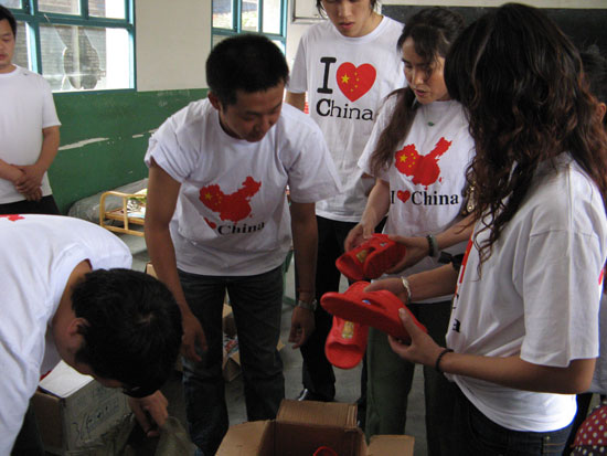 我们此次前往的地点是温江区抗震救灾援助中心公平镇灾民安置点,这个援助点目前安置了近1000名灾民, 18岁以下的孩子约200人,低年级孩子尤其居多。我们为孩子们送去了精心挑选出的学习用品、体育用品、凉拖鞋及生活日用品,物资总价值为4196.9元。