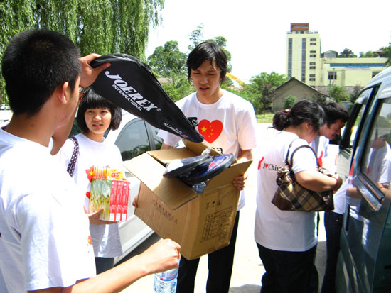 炎炎烈日下,一想到这些东西即将分发到孩子们手上,大家搬运物资的干劲丝毫没有减退,大家对灾区孩子们关爱之心没有一丝怠慢。由于我们到来的时候,正值上课时间,为了不打扰孩子们上课,我们只远远地观望着他们的教室,静静地参观了他们的图书室、活动室和住宿部。我们看到有那么多的爱心团体和个人在这里有过爱心之举,所以我们相信,孩子们将在这里度过他们快乐而难忘的“六.一儿”童节,也相信这些经受过灾难的孩子们能在大家的关爱之下扫走阴霾,重见阳光。