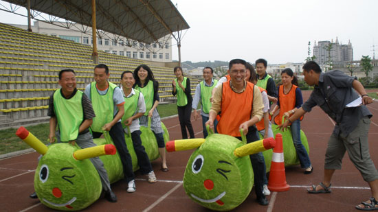 活动在组成的“雄鹰队”与“阳光队”之间展开,在精心编排的“毛毛虫”、“姣龙出海”、“背夹蓝球”、“勇闯鳄鱼潭”和“吉祥三宝”五个项目中展开了竞技。整个活动的气氛热烈而紧张,在每个项目的比赛中,两支队伍的队员们都团结协作,奋力拼搏,既相互竞争又充满了趣味性,既是对手又相互鼓励,洋溢着青春的活力,展示了二项目部“事事争好、处处争先”的精神风貌。