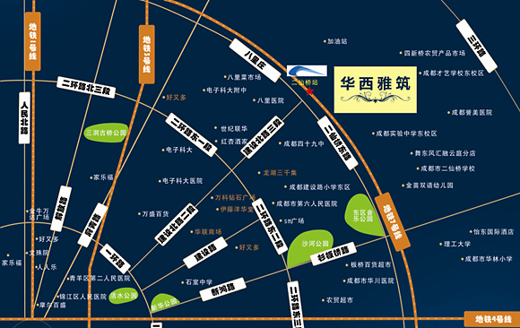 位置:华西.雅筑地处二仙桥中心位置,紧邻生活便利的建设 路片生活片区、八里庄片生活区及理工片区,其便利的生活不言而喻。