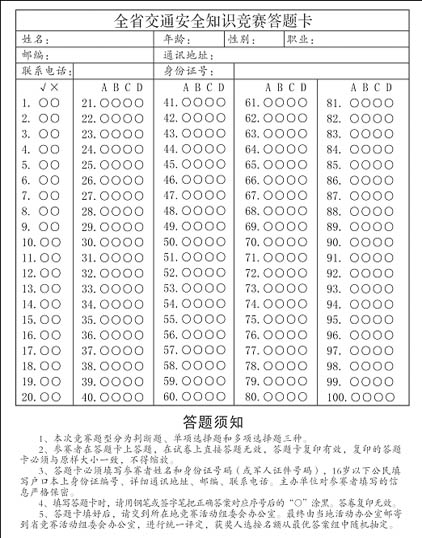 附件5:四川省交通安全知识竞赛答题卡