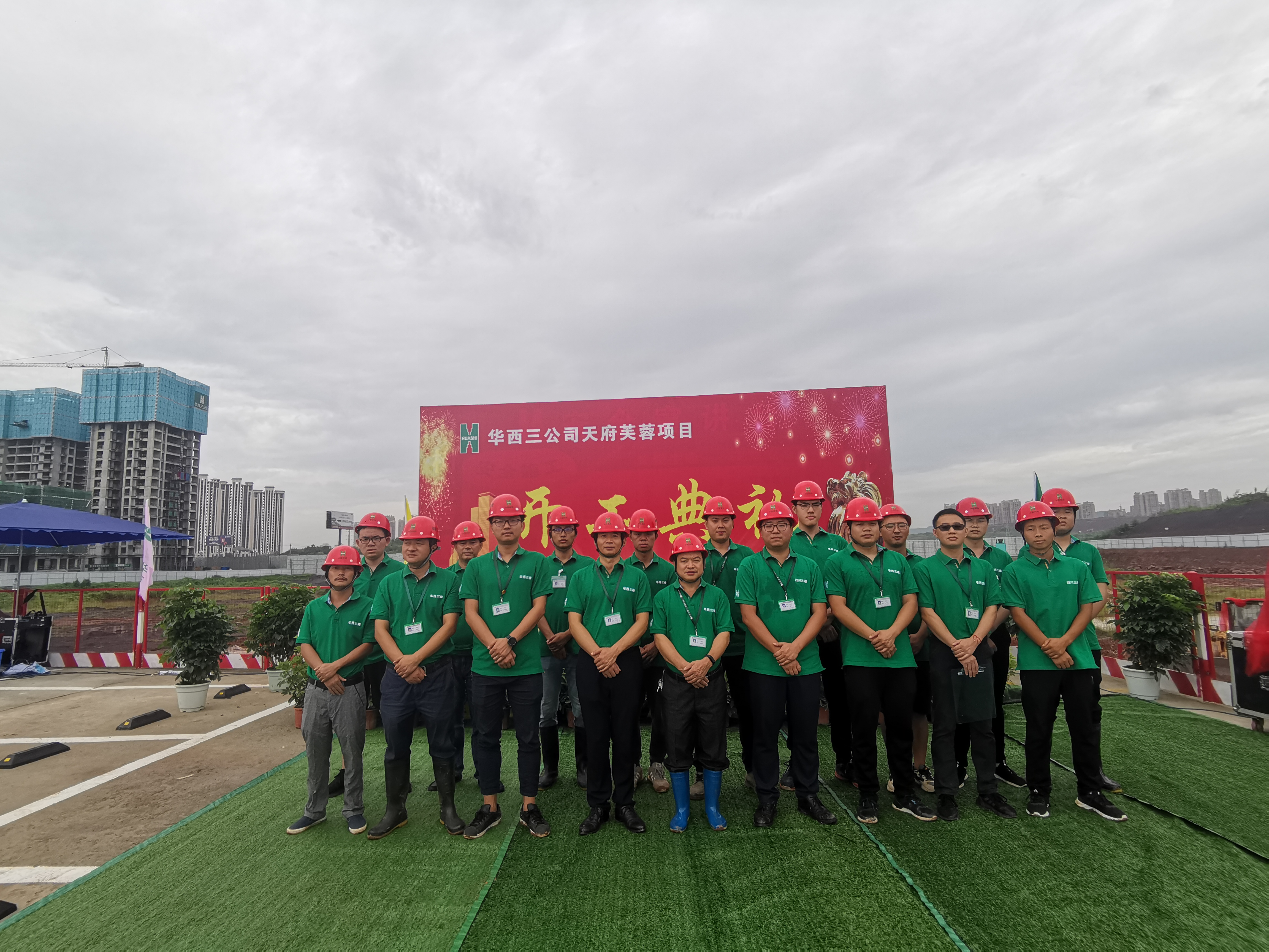 天府芙蓉项目位于仁寿县交通要道仁寿大道侧,建成后将成为闪耀仁寿的一颗璀璨明珠,也将成为仁寿县城市建设的一张靓丽名片。该项目是公司的重点项目,自工程承接以来,公司上下高度重视,精心组织,及时制定明确目标和施工方案,提出严格要求,并组建了强有力的团队进行施工建设。
