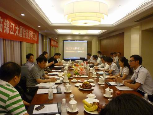 2012年7月9日上午,建设部AAA级安全标准化文明工地专家验收组及四川省质量监督总站领导莅临锦江大厦项目,检查验收该工地创国家级AAA级标准化工地工作,三公司副总经理陈云英陪同专家组检查验收。