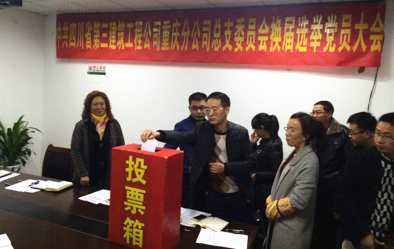 11月29日下午召开了党员大会进行换届选举。会议由上一届党总支委员主持,公司党委工作部同志受公司党委委托,到会宣读公司党委的相关文件批复。大会审议通过了上一届党总支工作报告、党费收缴使用情况报告级及《重庆分公司党总支委员会选举办法(草案)》。根据选举办法,全体与会党员通过差额选举、无记名投票的方式,选举产生由3名同志组成的新一届党总支委员会。会上,新一届党总支委员代表作了发言,他表示,新一届党总支委员会必将继续保持学习,在今后的工作中,坚决服从上级党组织的决策决议,决不辜负上级党组织和大家的期望;教育引导分公司党员加强学习、严于律己、恪尽职守、勤奋工作,起好党员的示范带头作用,团结带领职工为分公司的发展努力拼搏。随后,在新一届党总支委员会第一次全体会议上选举产生了分公司党总支书记。