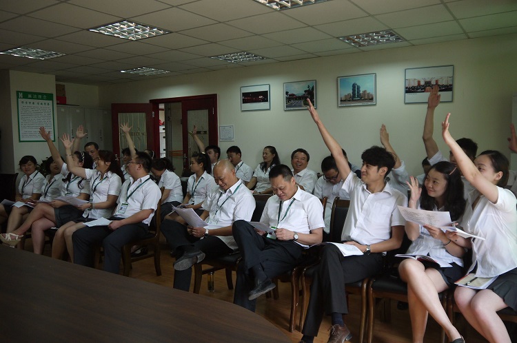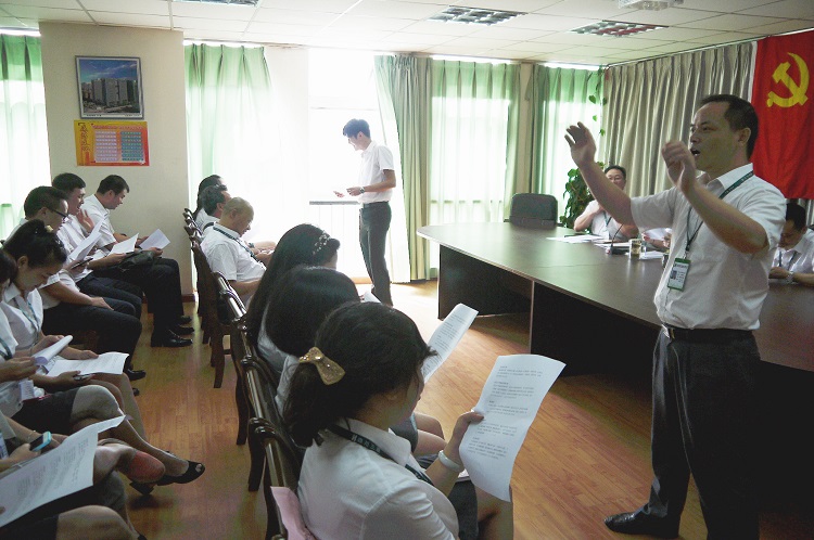 本次活动分为党课学习、企业文化知识竞赛和收看反腐倡廉教育片三个环节。全体党员以一首《没有共产党就没有新中国》拉开了活动的帷幕,机关党支部和项目党支部分别进行了“红歌”拉歌比赛,活动气氛活泼又不失严肃。